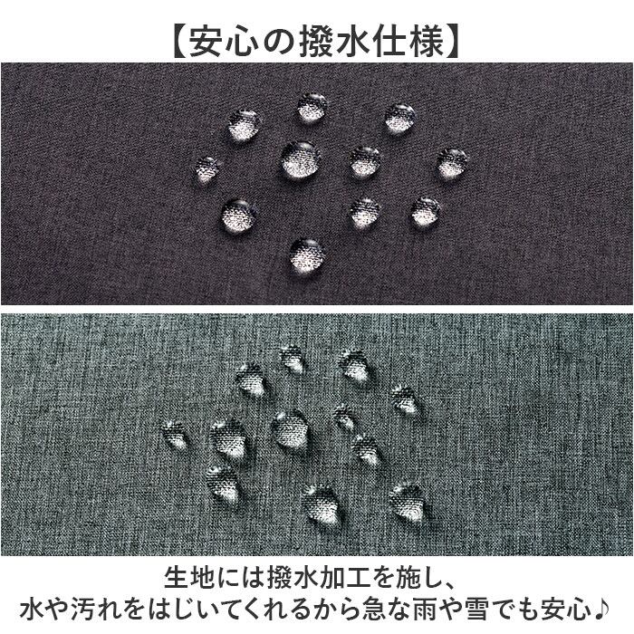 ・生地には撥水加工を施し、水や汚れをはじいてくれるから急な雨や雪でも安心♪
