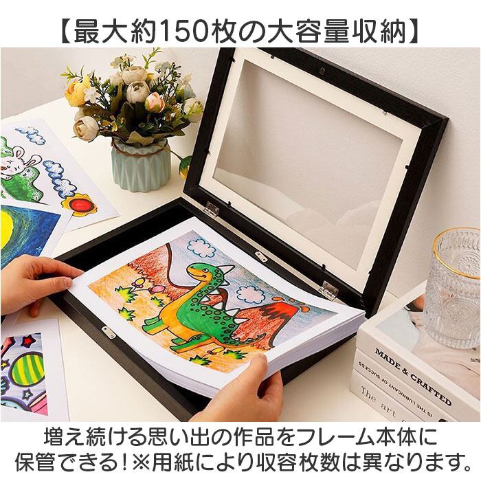 ・増え続ける思い出の作品をフレーム本体に保管できる!※用紙により収容枚数は異なります。
