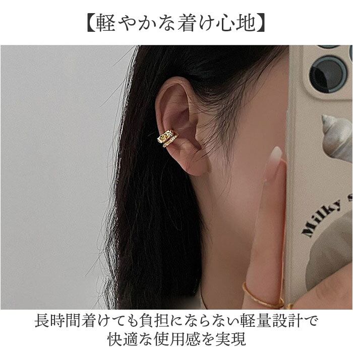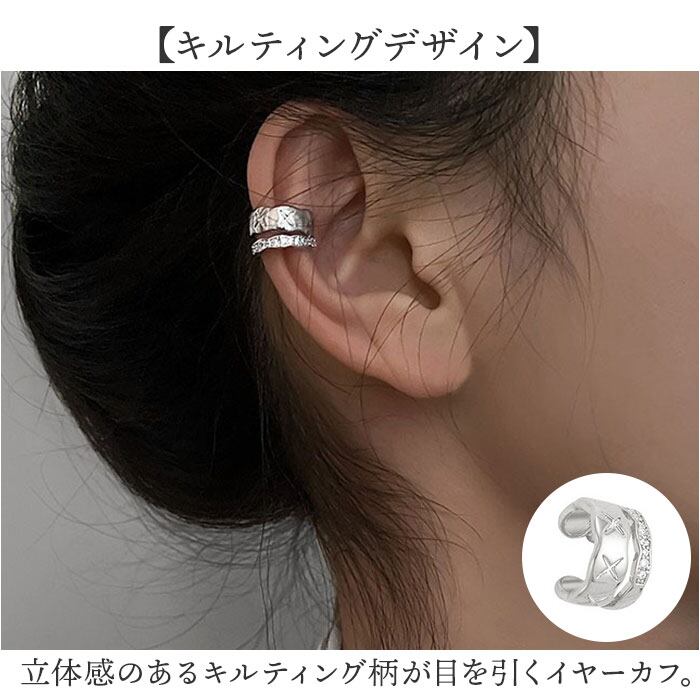 ・立体感のあるキルティング柄が目を引くイヤーカフ。