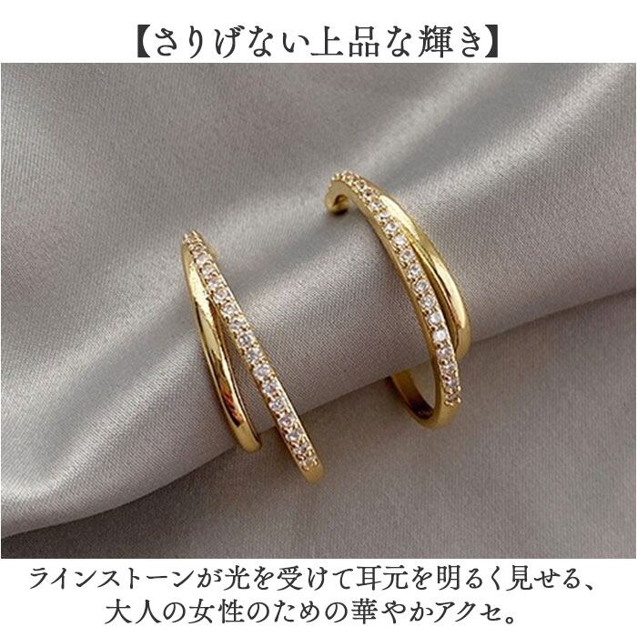 ・毎日のスタイルを上品に仕上げる「イヤーカフ イヤリング ラインストーン 両耳セット」。
