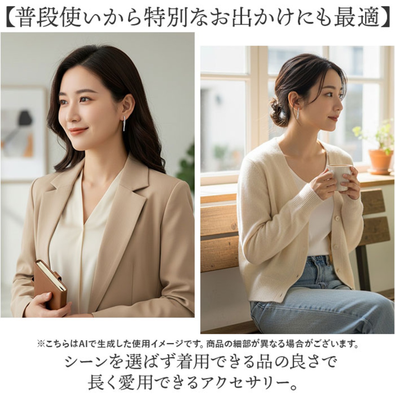 ・ シーンを選ばず着用できる品の良さで長く愛用できるアクセサリー。