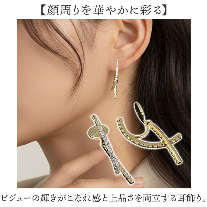 ・ビジューの輝きがこなれ感と上品さを両立する耳飾り。