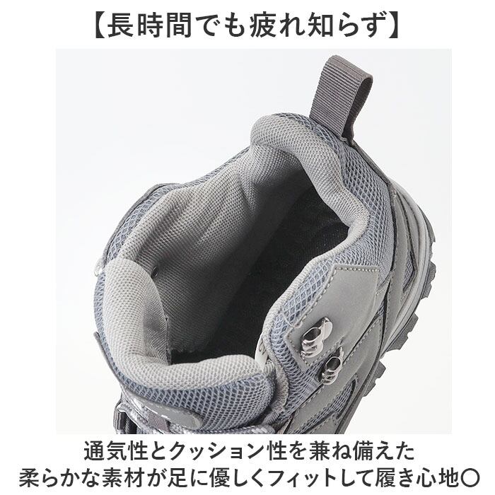 ・ハイカットデザインが足首までしっかり支え、不安定な山道も安心して歩ける◎