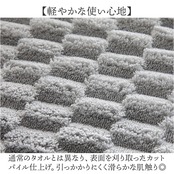 ・通常のタオルとは異なり、表面を刈り取ったカットパイル仕上げ。引っかかりにくく滑らかな肌触り◎