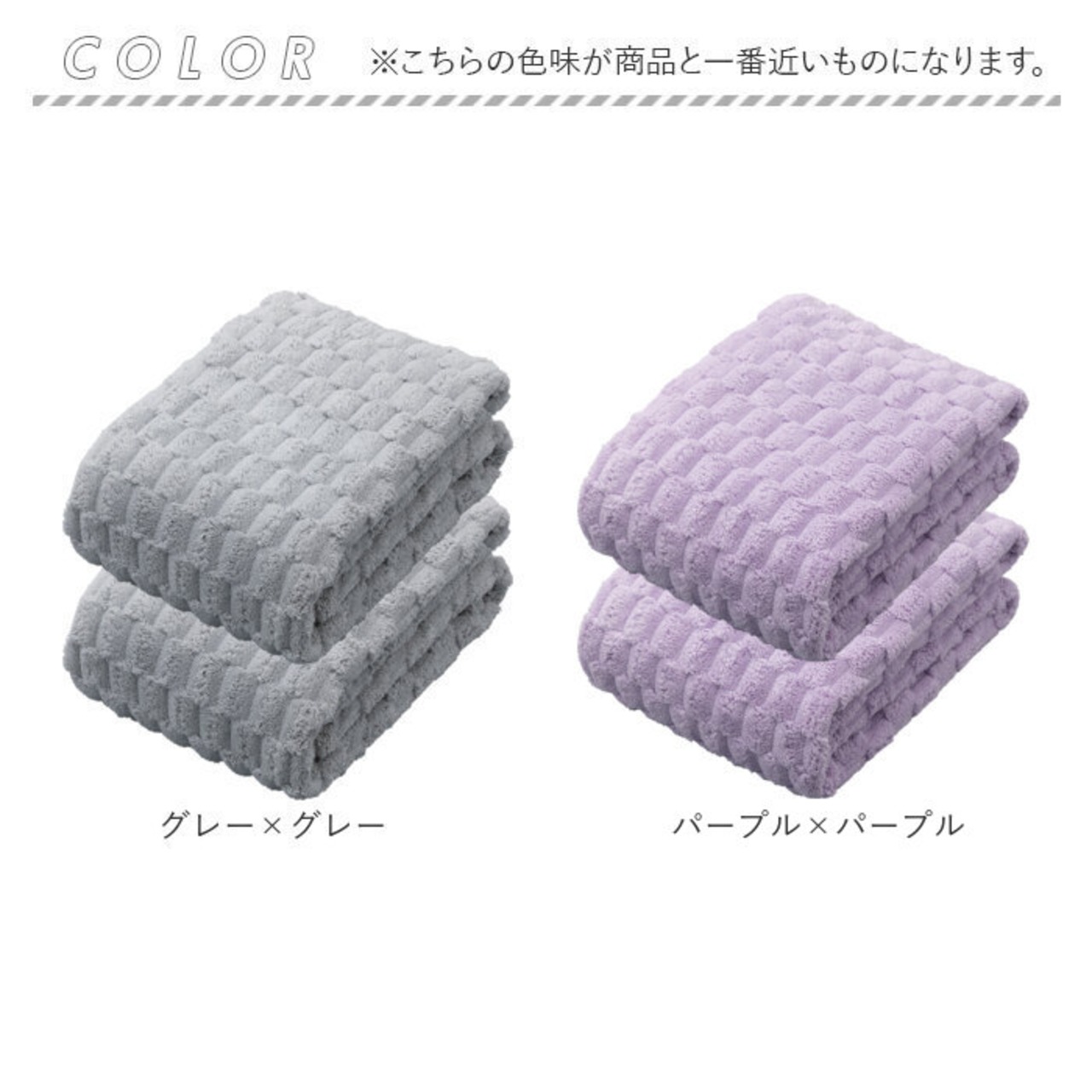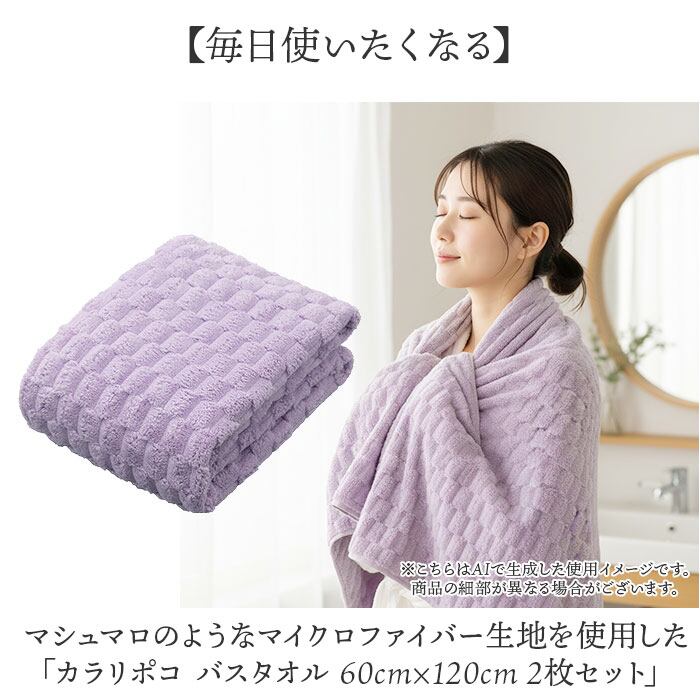 ・マシュマロのようなマイクロファイバー生地を使用した「カラリポコ バスタオル 60cm×120cm 2枚セット」。