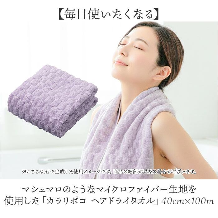 ・マシュマロのようなマイクロファイバー生地を使用した「カラリポコ ヘアドライタオル」40cm×100m。