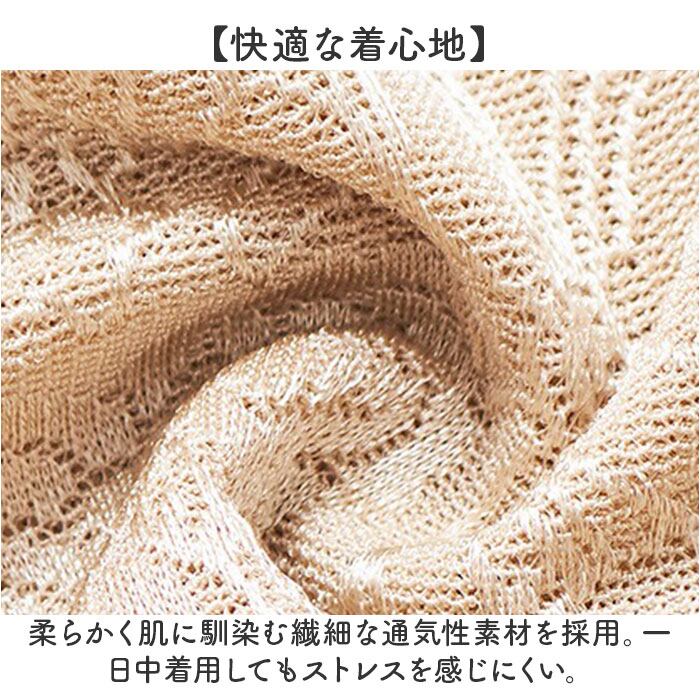 ・柔らかく肌に馴染む繊細な通気性素材を採用。一日中着用してもストレスを感じにくい。