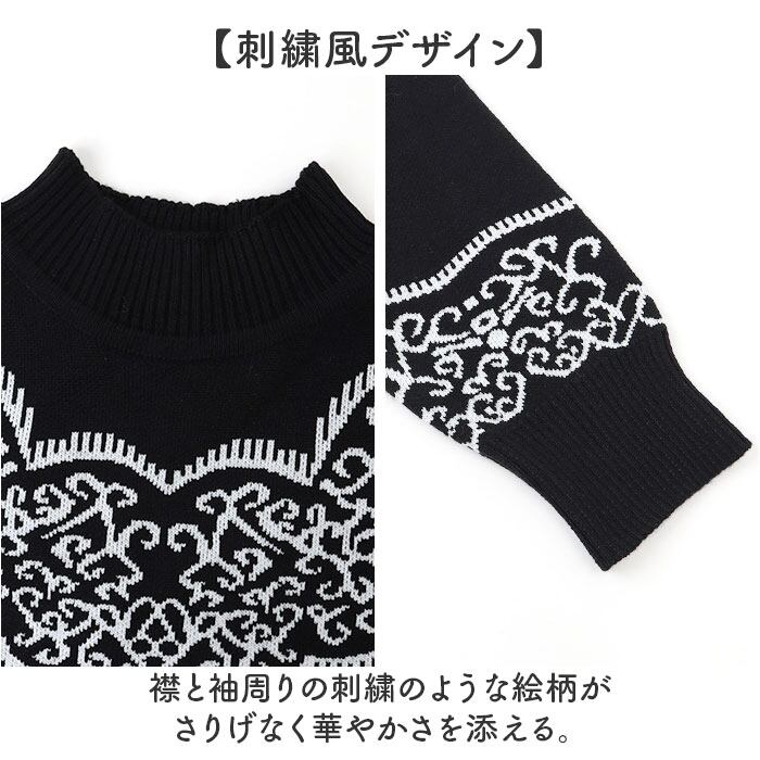 ・襟と袖周りの刺繍のような絵柄がさりげなく華やかさを添える。