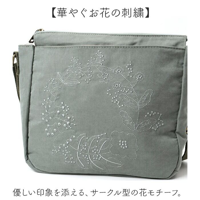 ピーチスキン風刺繍 ショルダーバッグ