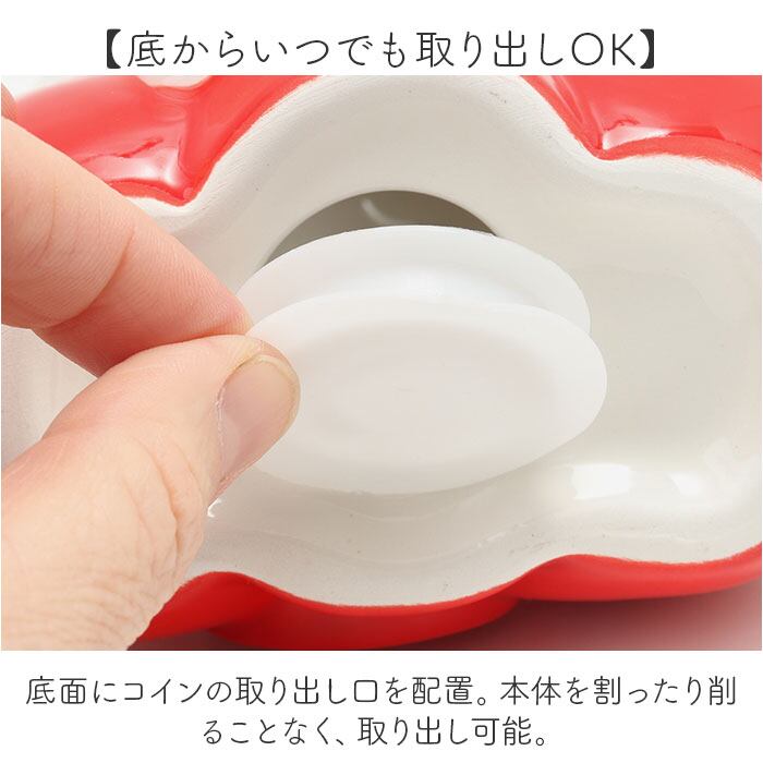 ・底面にコインの取り出し口を配置。本体を割ったり削ることなく、取り出し可能。
