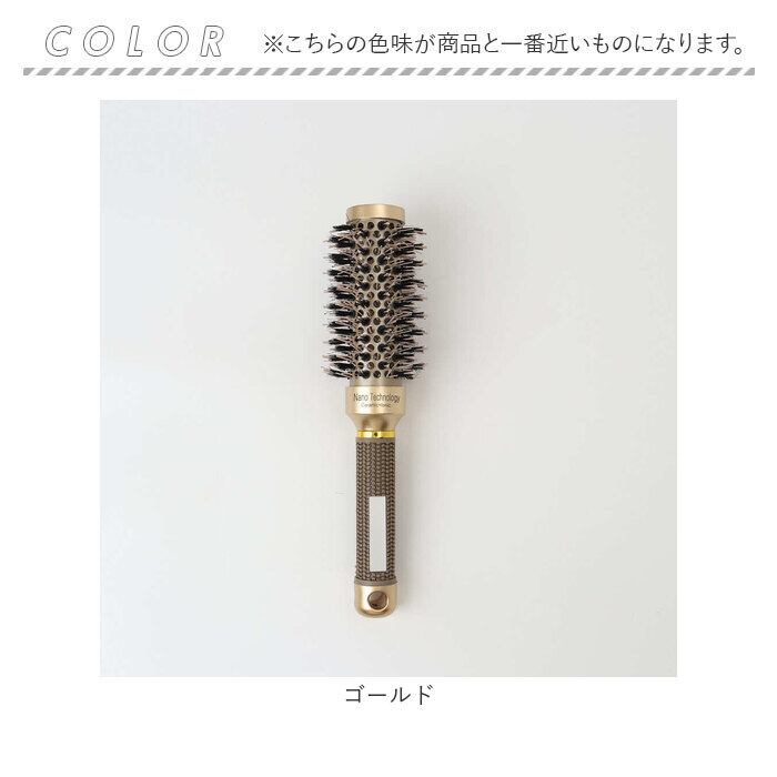 ロールブラシ 豚毛 通販 ヘアブラシ ブラシ カールブラシ ブローブラシ ヘアアレンジ くし 櫛 巻き髪 前髪 スタイリング ヘアセット カール ブロー カーリー パーマ ヘアケア ゴールド ナイロン おしゃれ