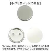 ・フィルム、表面、裏面のセット。お気に入りの素材を挟むだけで、オリジナルバッジが簡単に完成♪