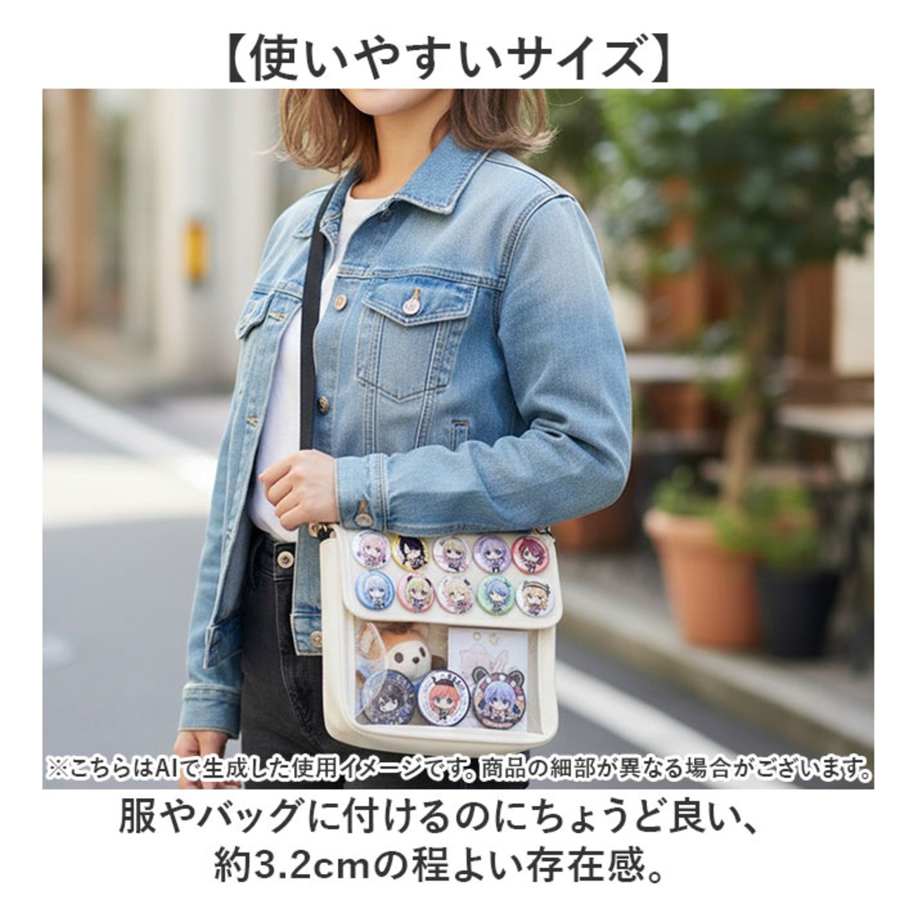 ・服やバッグに付けるのにちょうど良い、約3.2cmの程よい存在感。