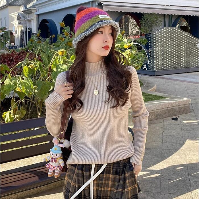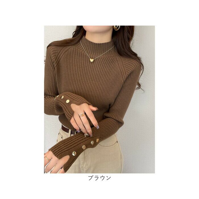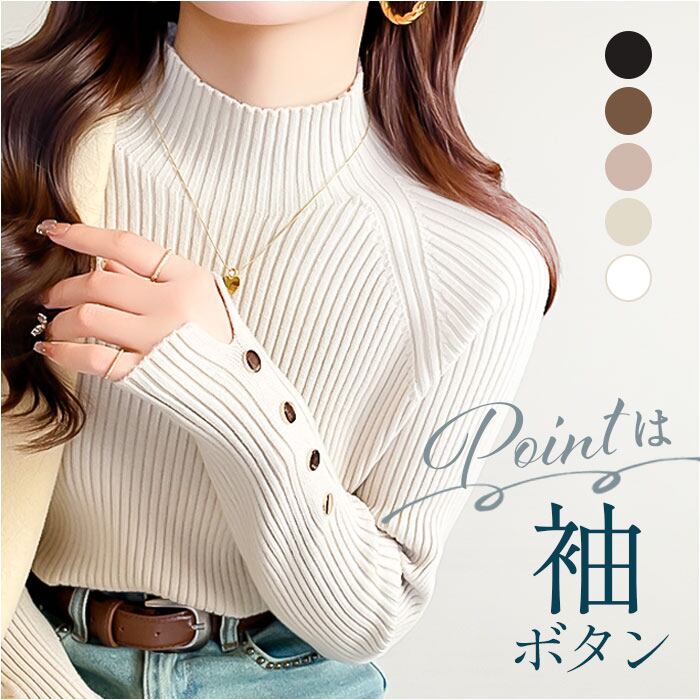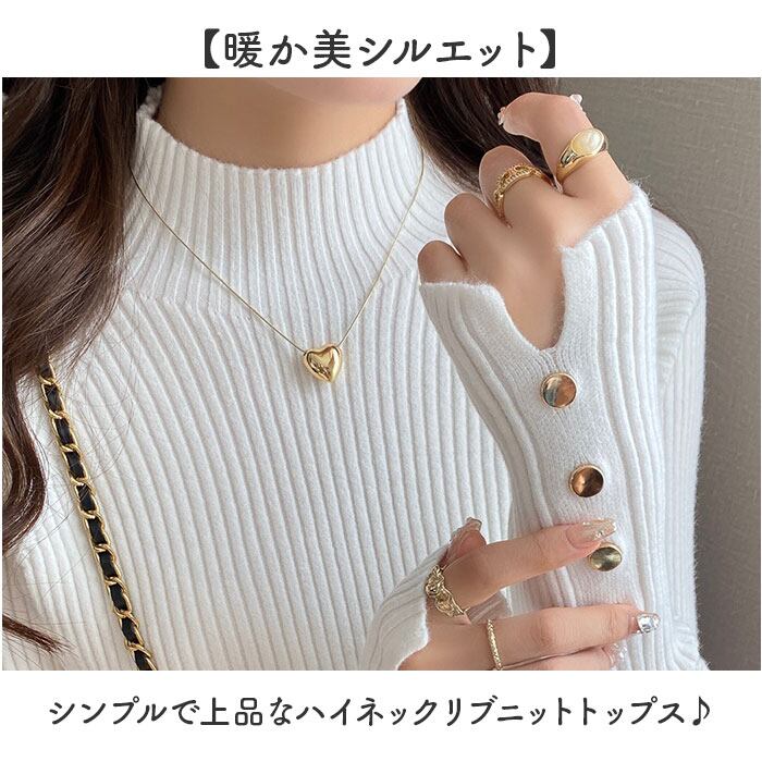 ・シンプルで上品なハイネックリブニットトップス♪