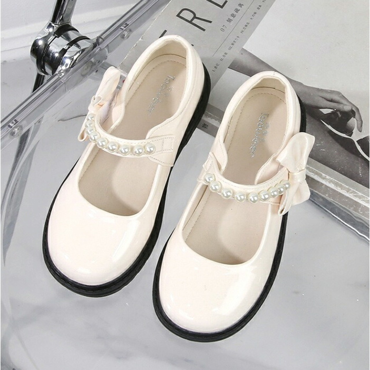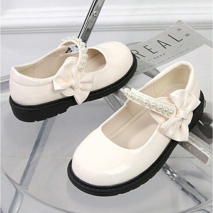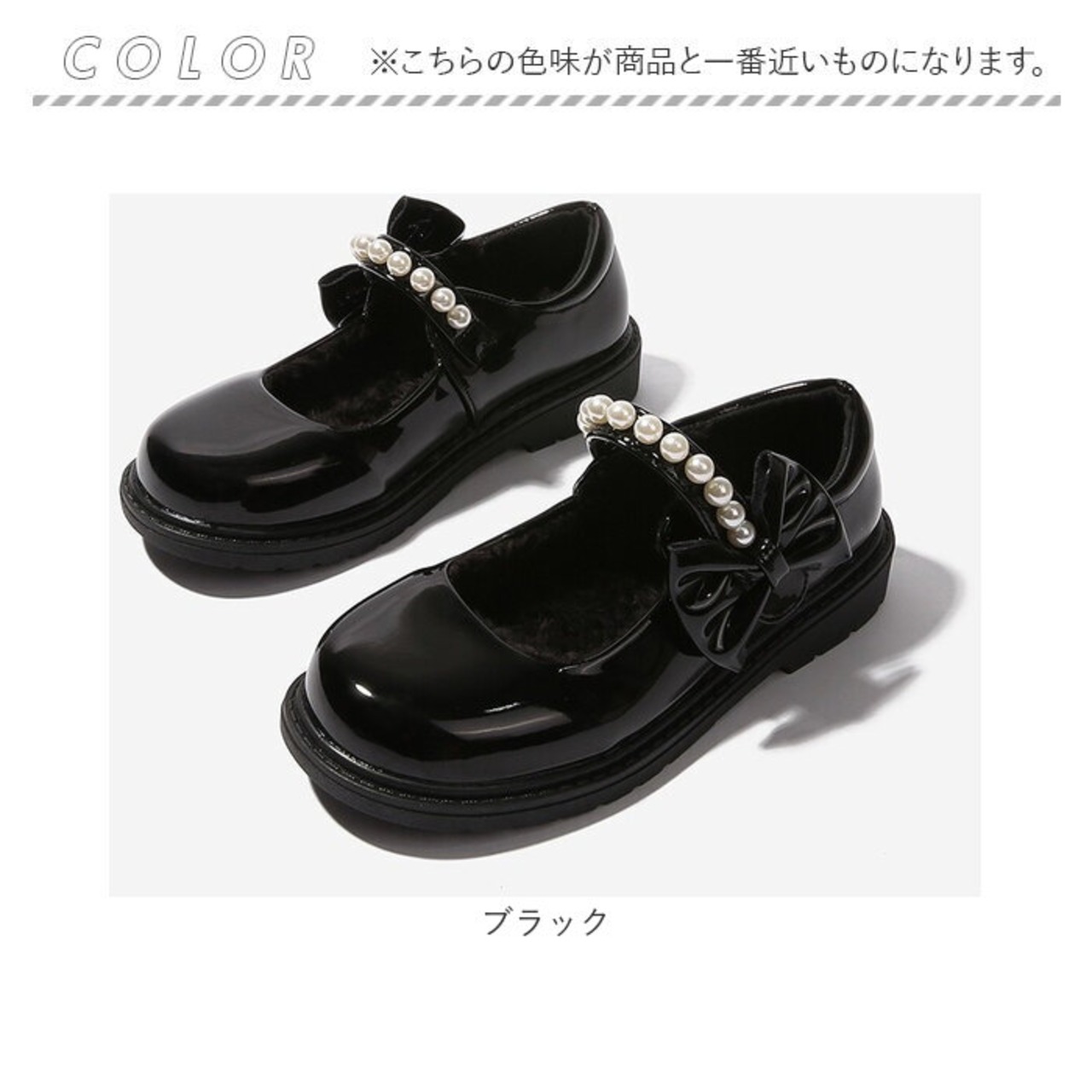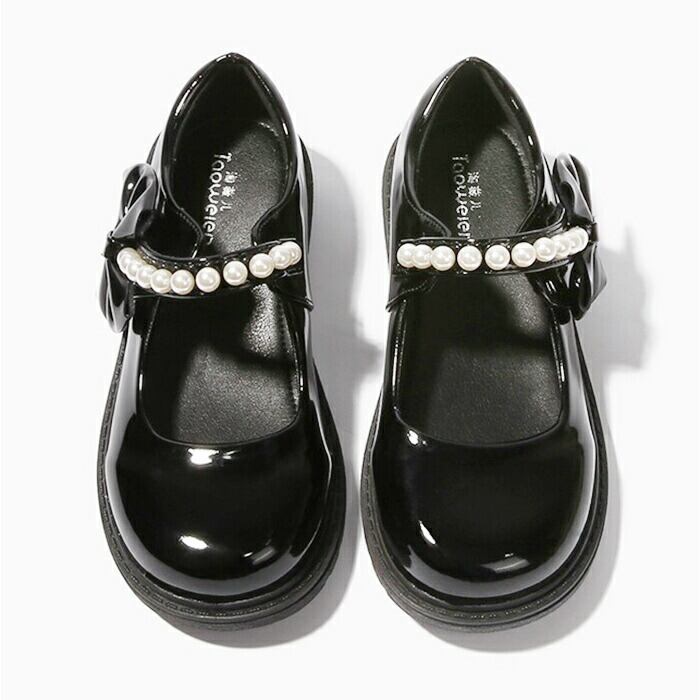 ・パールとリボンが上品に輝き、コロンとしたつま先も可愛らしい〇