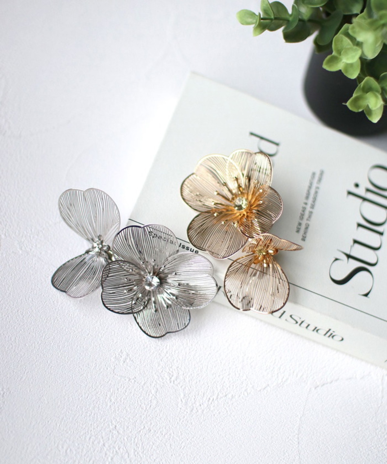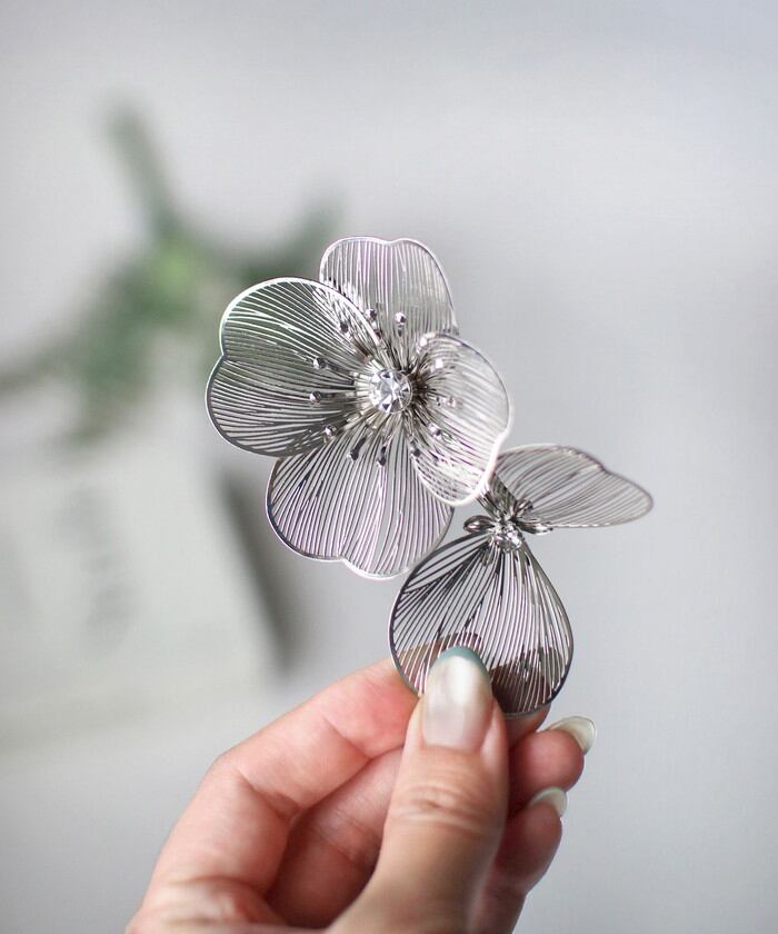 ・グラシアヘアクリップは、繊細な花びらとラインストーンが輝く、華やかで上品なヘアアクセサリーです。