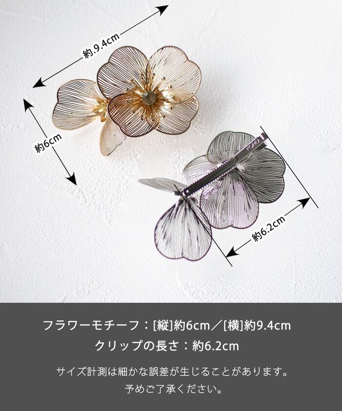 フラワーモチーフ:縦9.4cm/横6cm