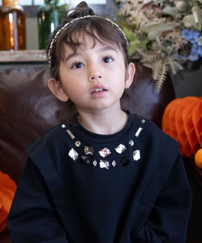 ・胸元のカラフルなストーンが大人可愛い印象を与え、特別感を演出。
