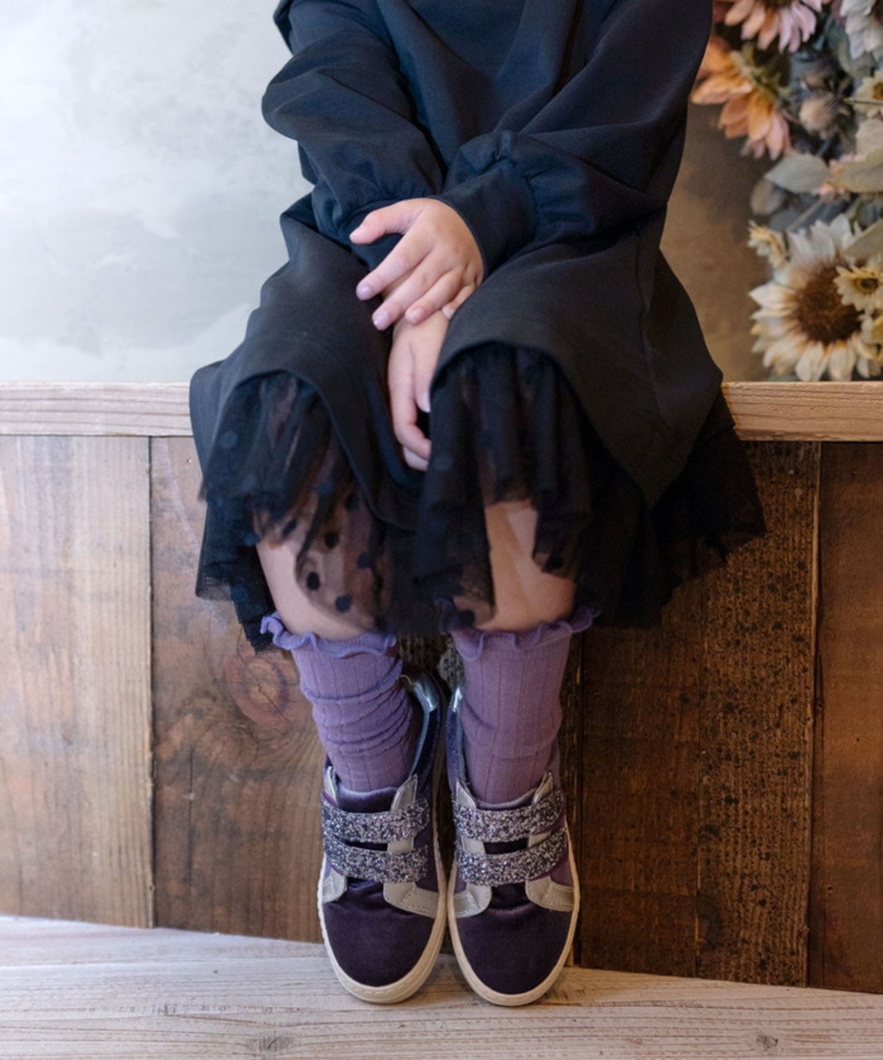 ・裾は柔らかくふんわりとしたドットのチュールレースで、優雅でエレガントな雰囲気に仕上げています。