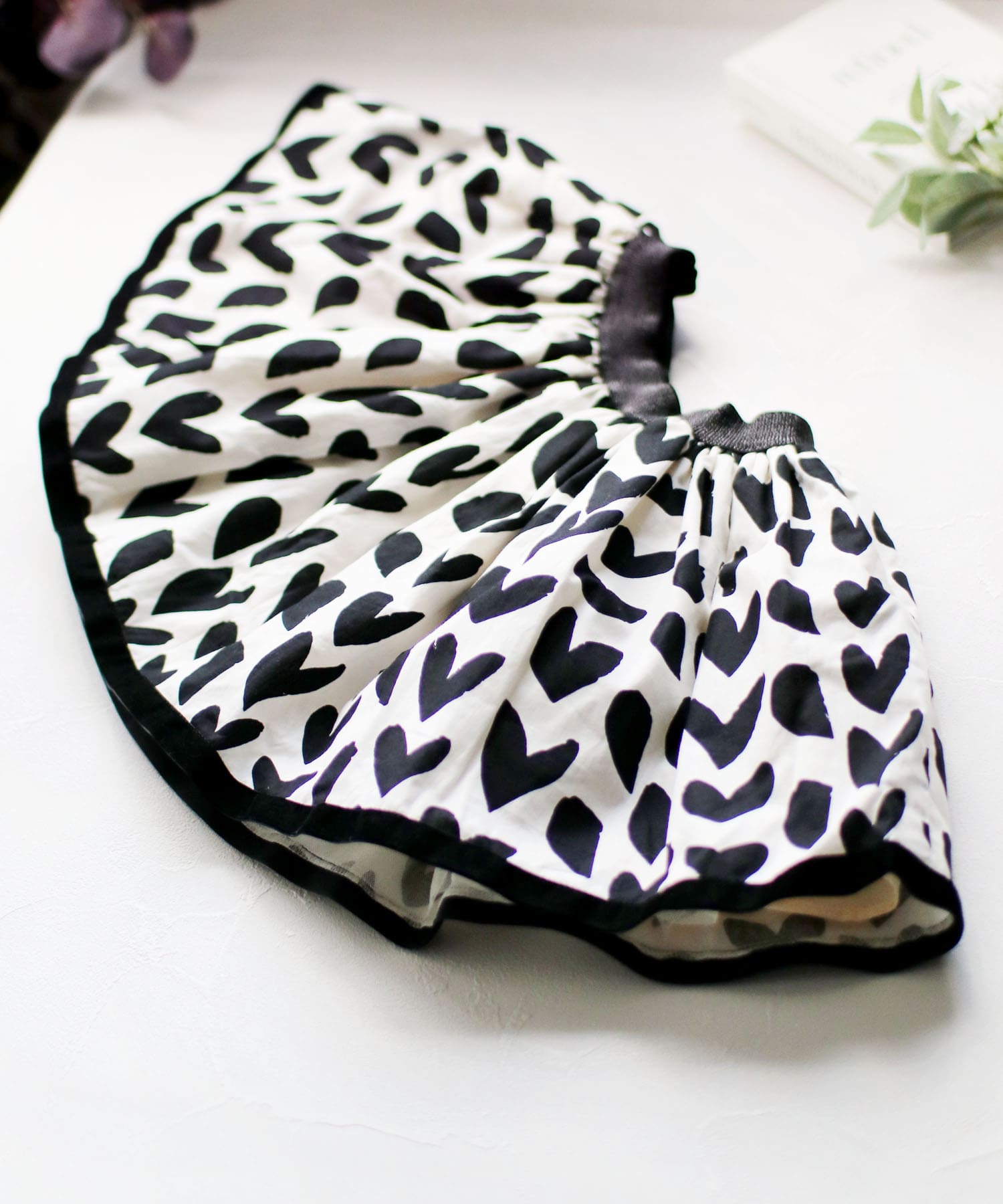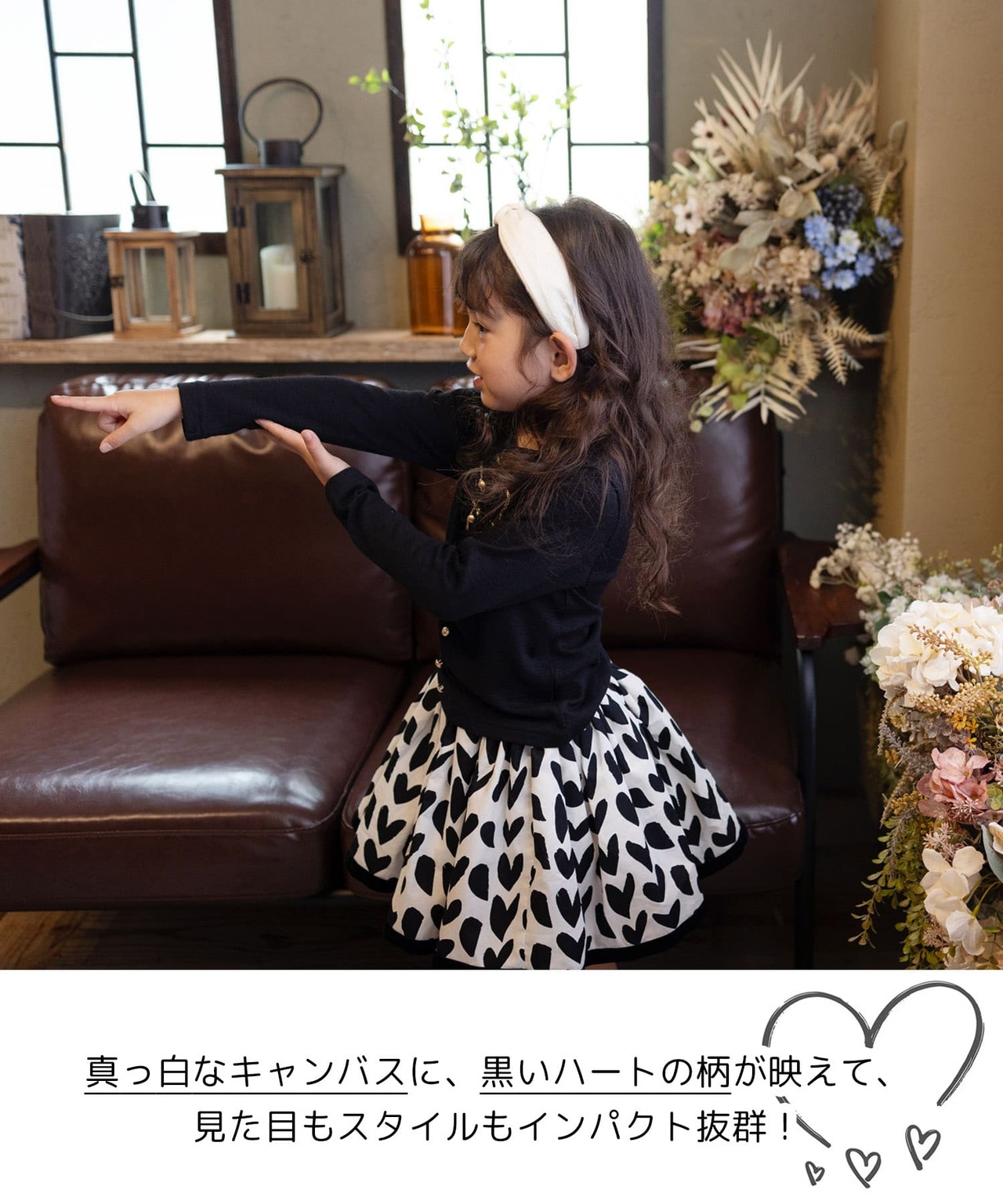 ・真っ白なキャンバスに黒いハートの柄が映えて、見た目もスタイルもインパクト抜群!どんなトップスとも相性よく、毎日のコーディネートが楽しくなります。