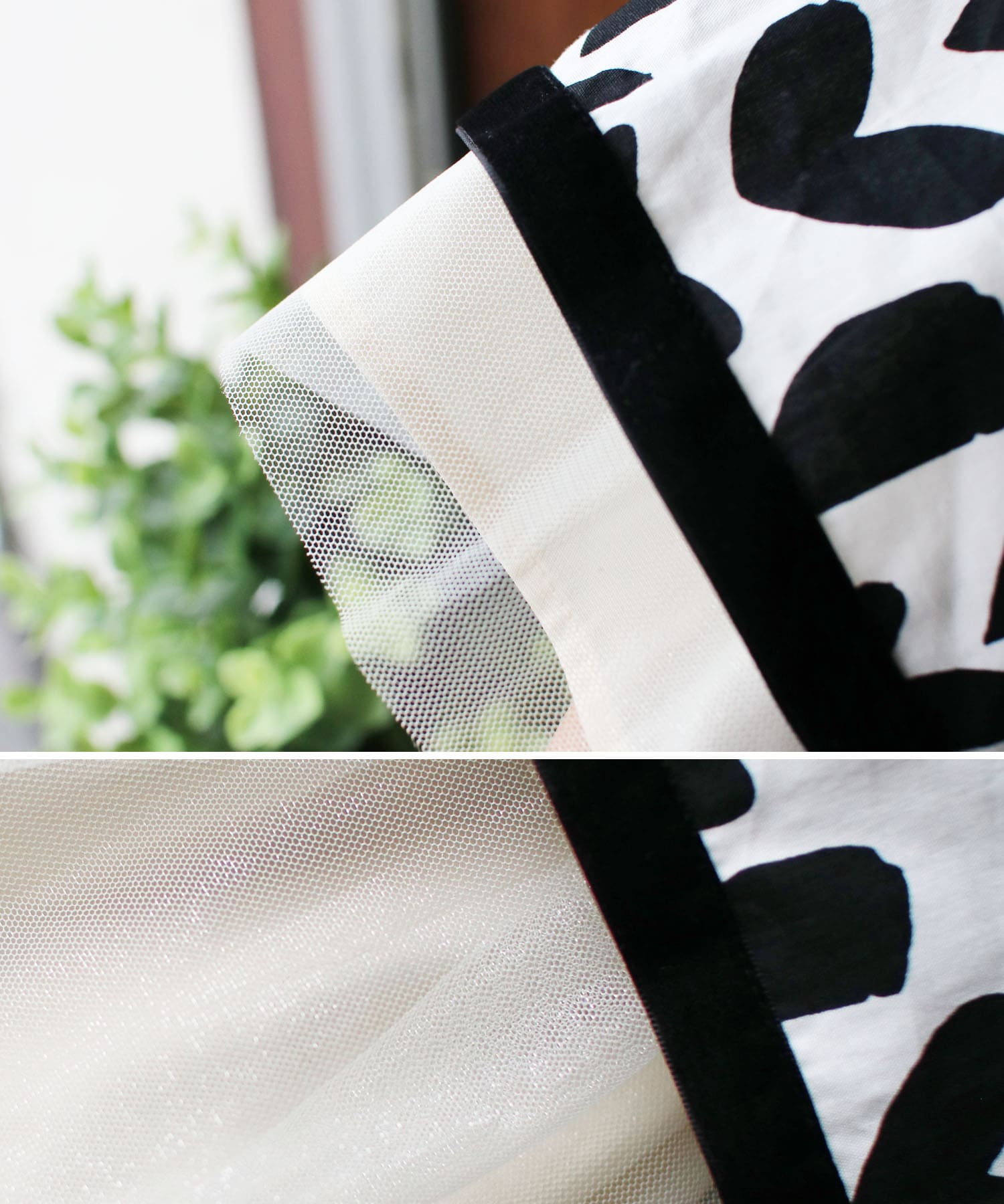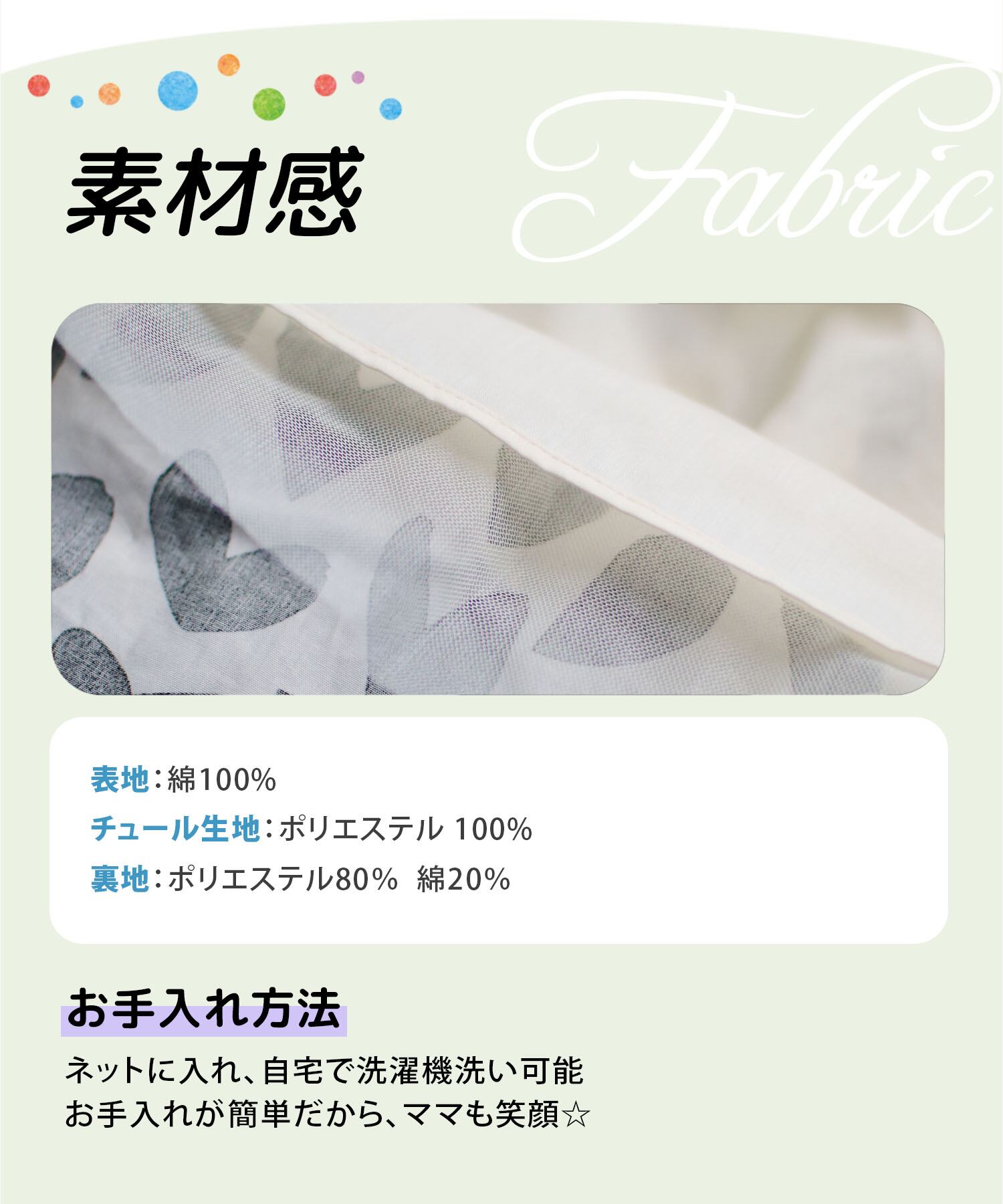 表地:綿100%/チュール生地:ポリエステル100%/裏地:ポリエステル80%、綿20%/ウエスト部分:ポリエステル100%