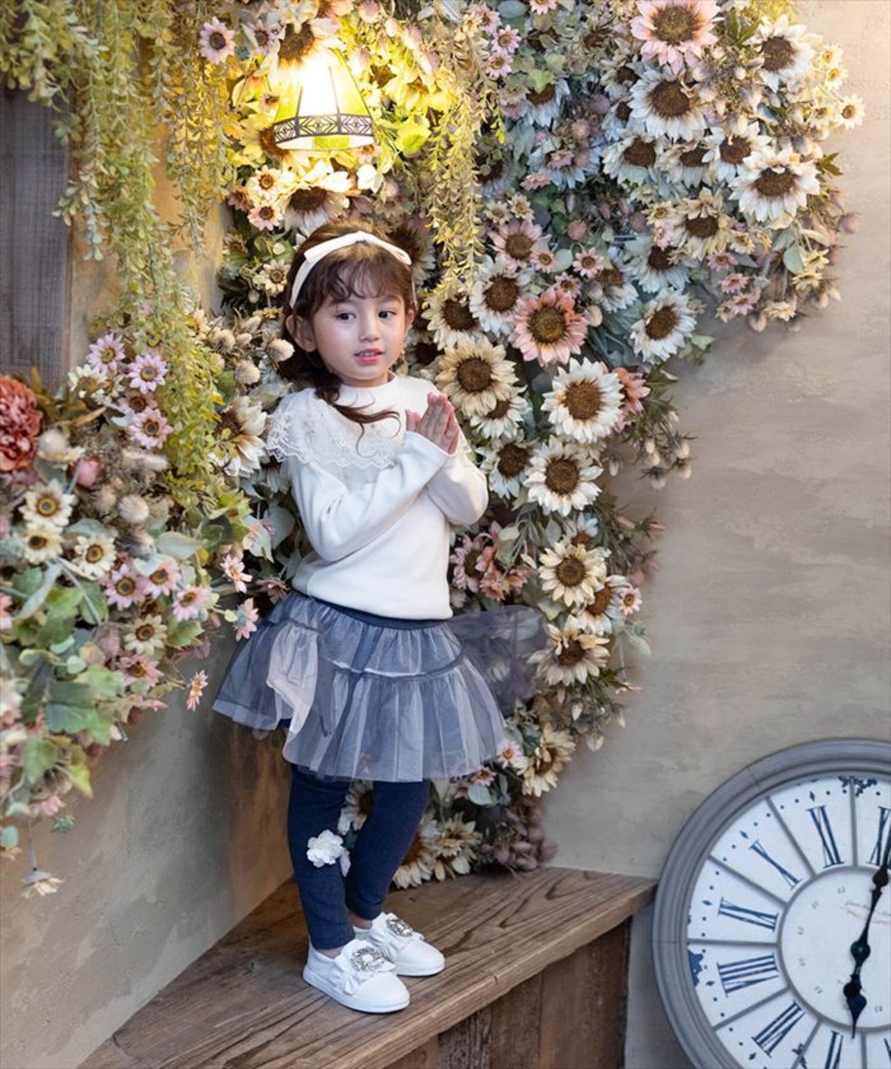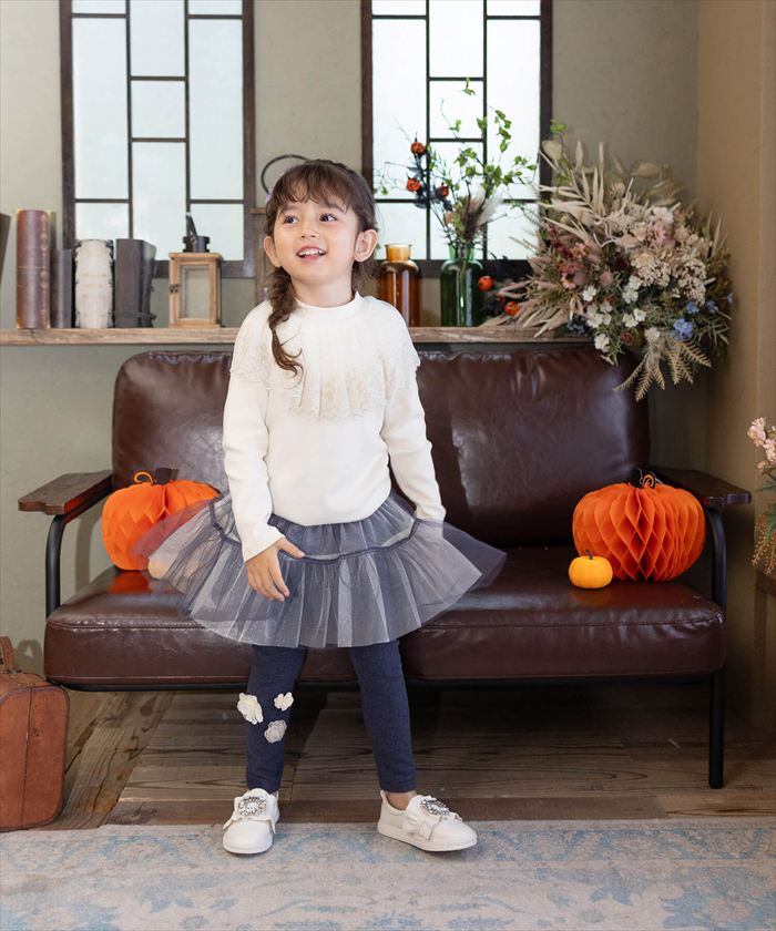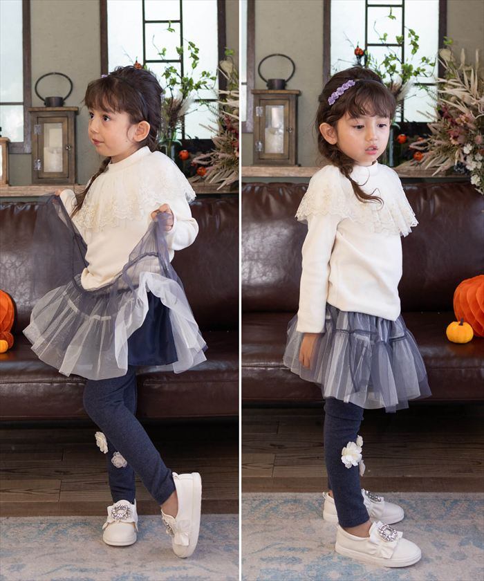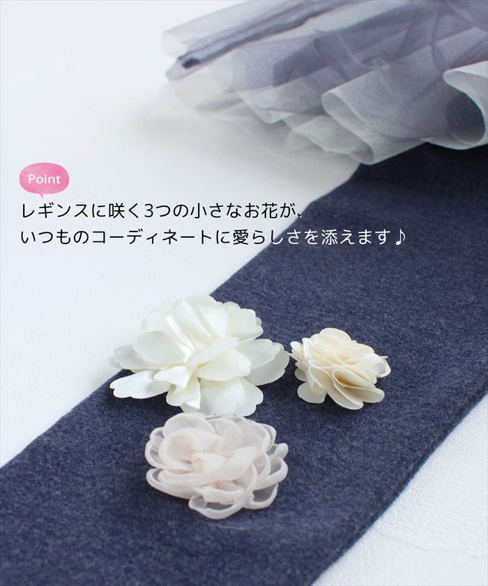 ・レギンスに咲く3つの小さなお花がいつものコーディネートに愛らしさを添えます。