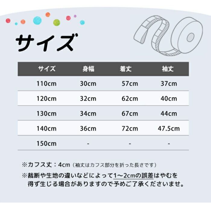 【140cm】着丈:72cm/身巾:36cm/袖丈:47.5cm/カフス丈4cm