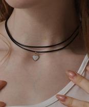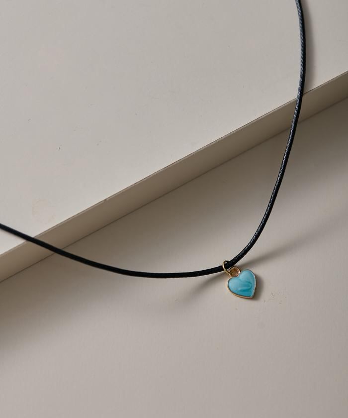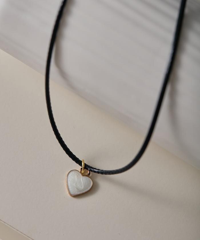 ・小さなハートのチャームが揺れるシンプルなネックレス。