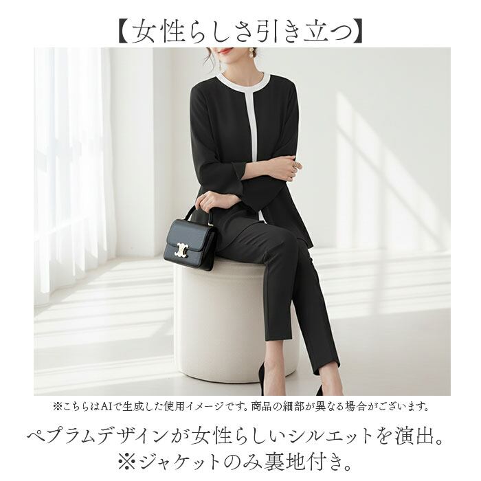 ・ペプラムデザインが女性らしいシルエットを演出。※ジャケットのみ裏地付き。