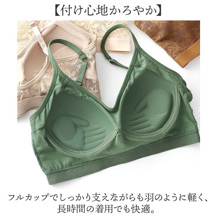 ・フルカップでしっかり支えながらも羽のように軽く、長時間の着用でも快適。