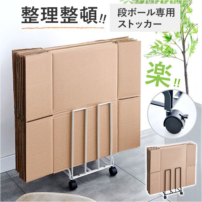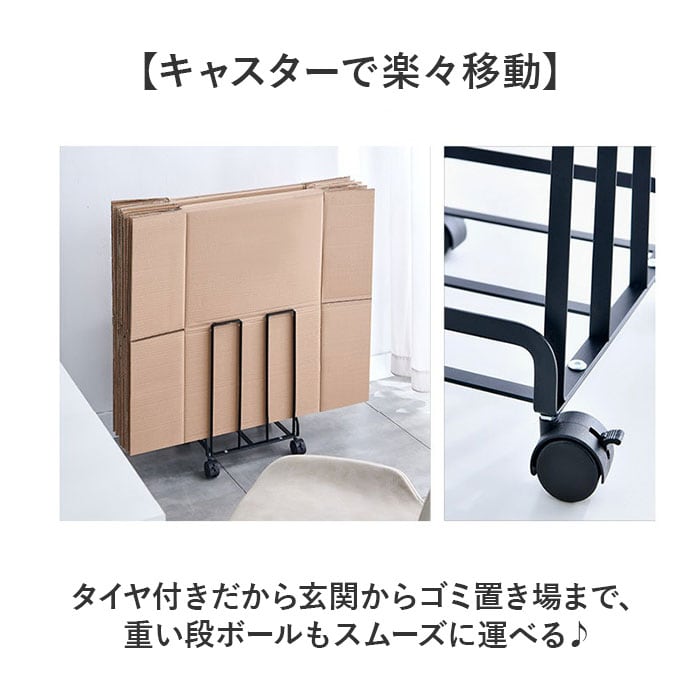 ・キャスター付きで移動も楽々、段ボール専用ストッカー。