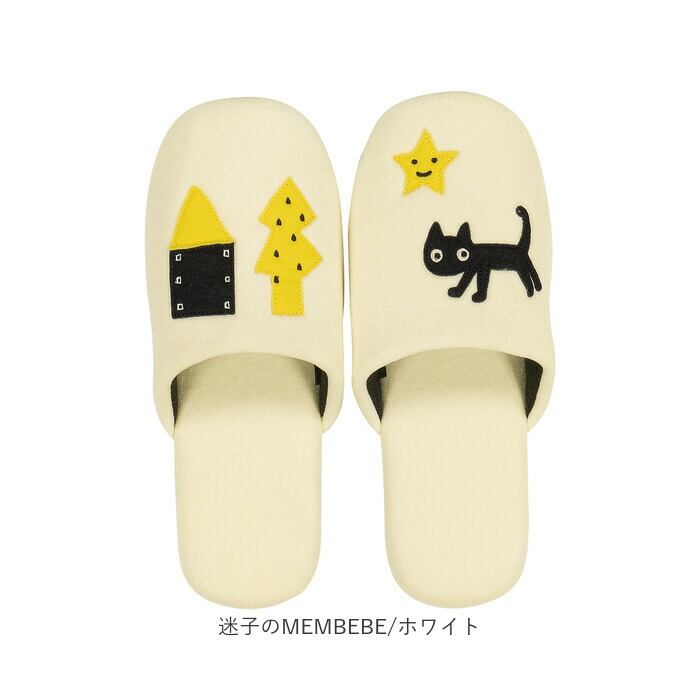 ・迷子のMEMEBEBEのデザインが印象的な「Atsuko Matano スリッパ」。