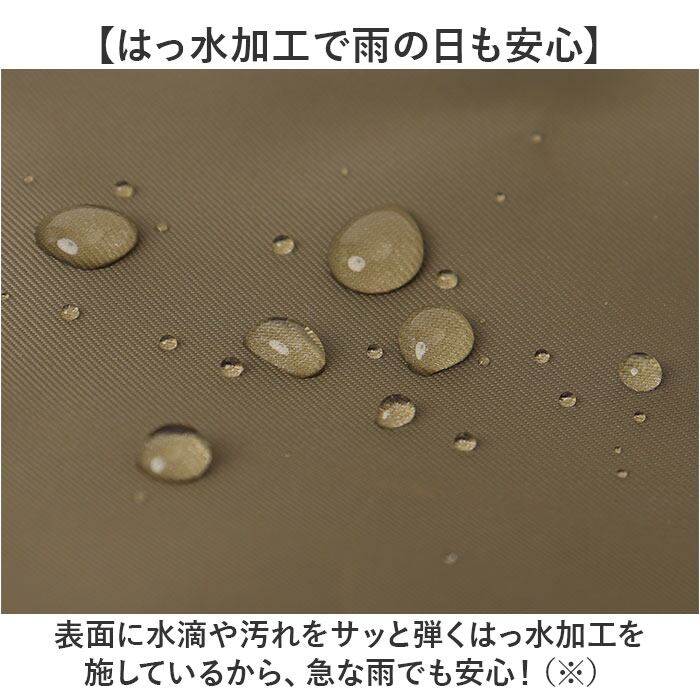 ・表面に水滴や汚れをサッと弾くはっ水加工を施しているから、急な雨でも安心!