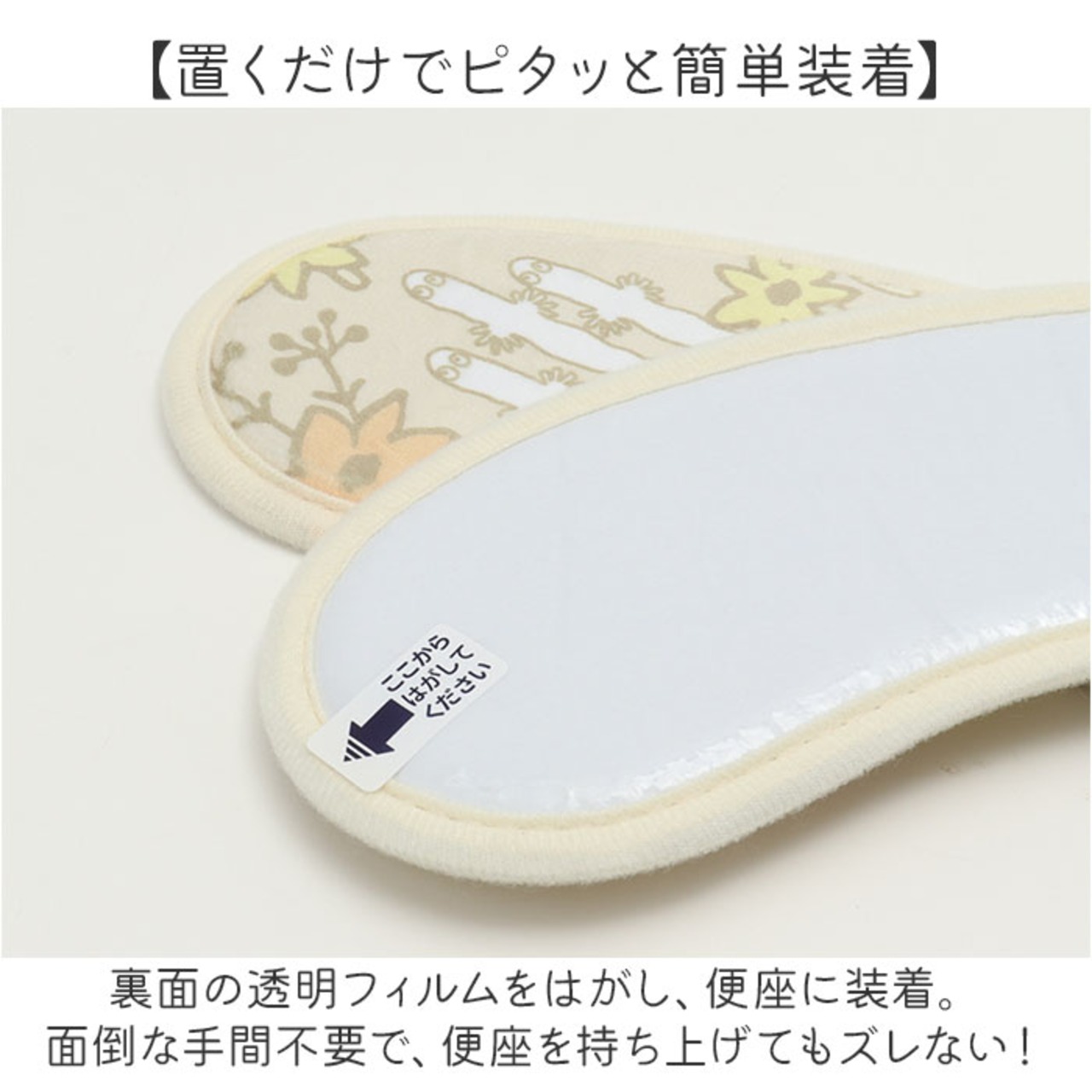 ・裏面の透明フィルムをはがし、便座に装着。面倒な手間不要で、便座を持ち上げてもズレない!