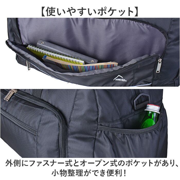 ・外側にファスナー式とオープン式のポケットがあり、小物整理ができ便利!