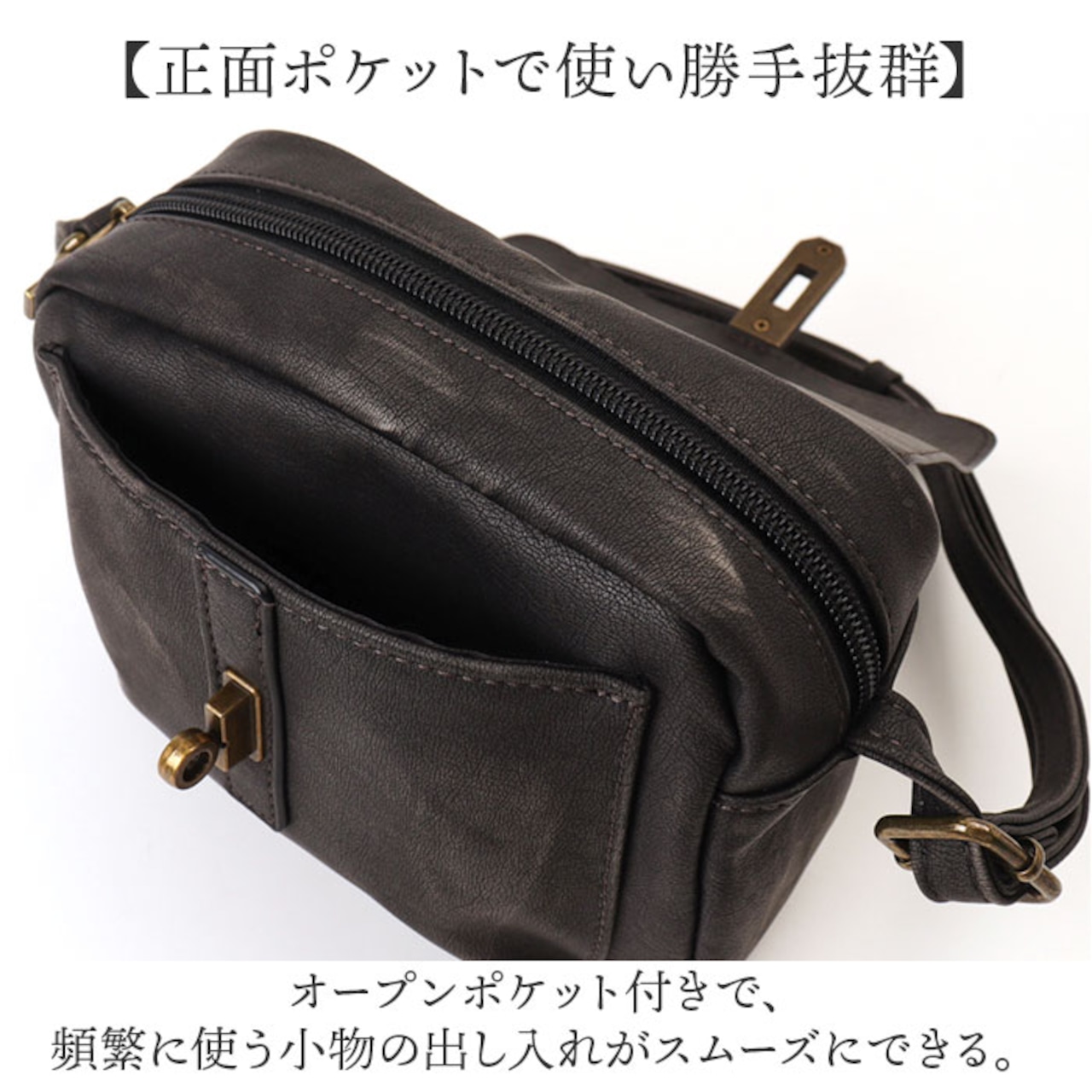 ・オープンポケット付きで、頻繁に使う小物の出し入れがスムーズにできる。