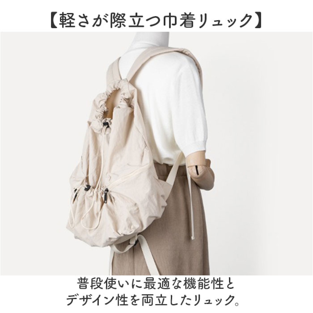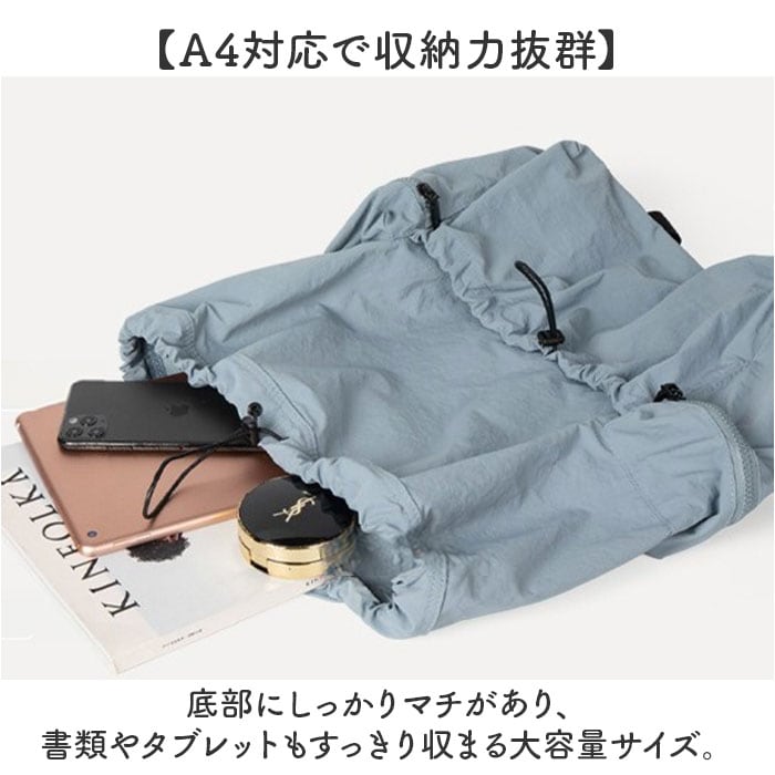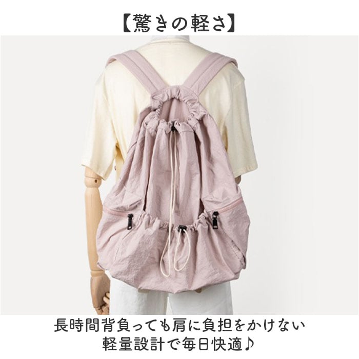 【軽さが際立つ巾着リュック】