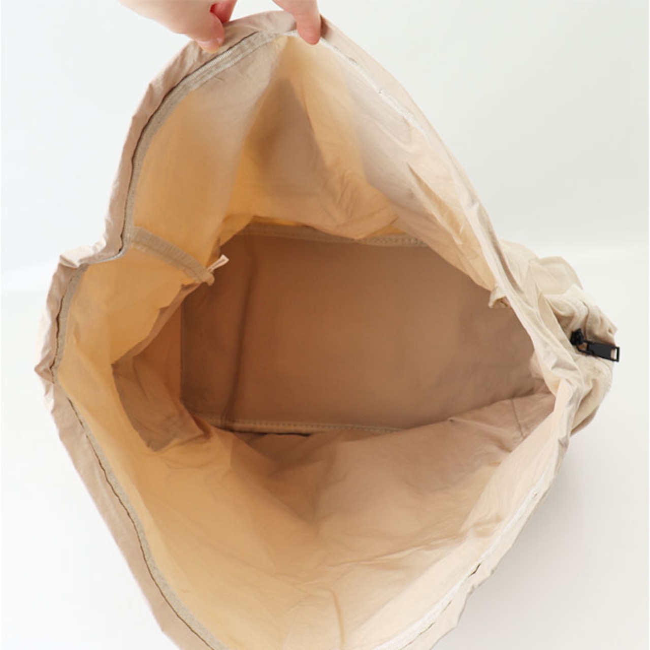 ・紐を緩めれば開口部が大きく開き、中身が一目瞭然で便利〇