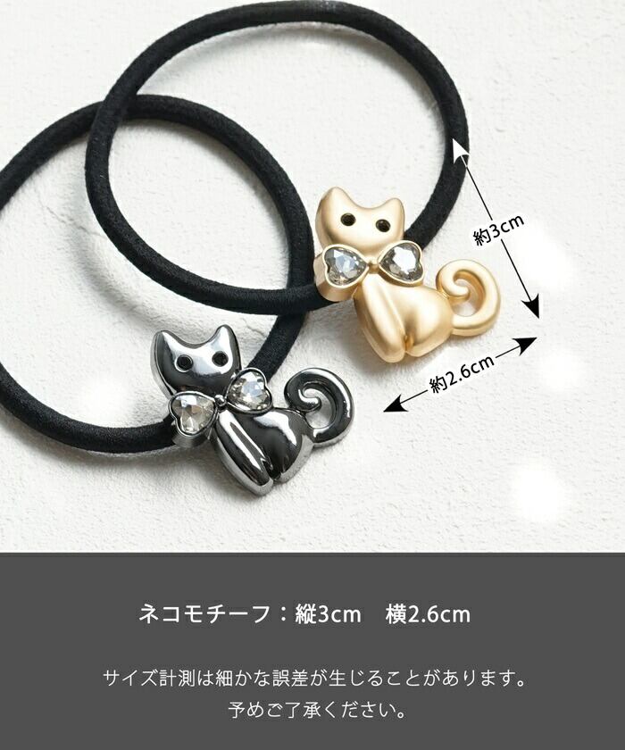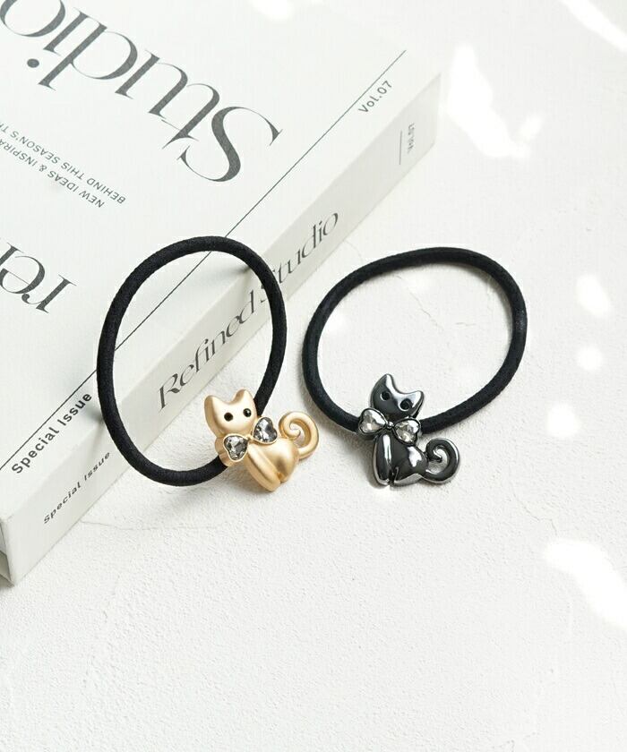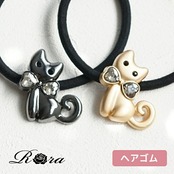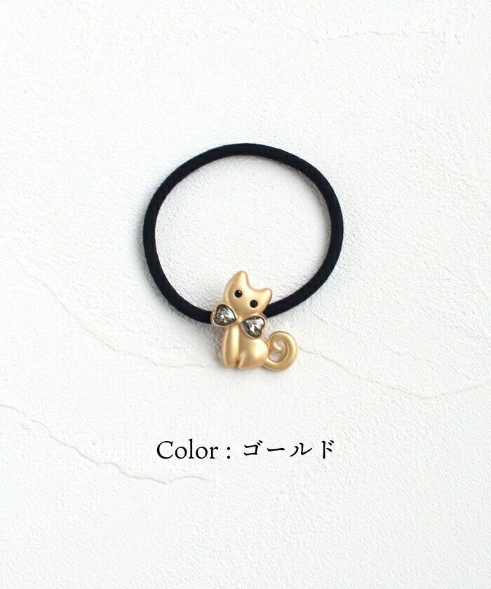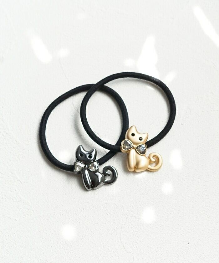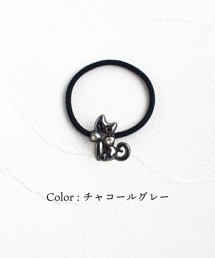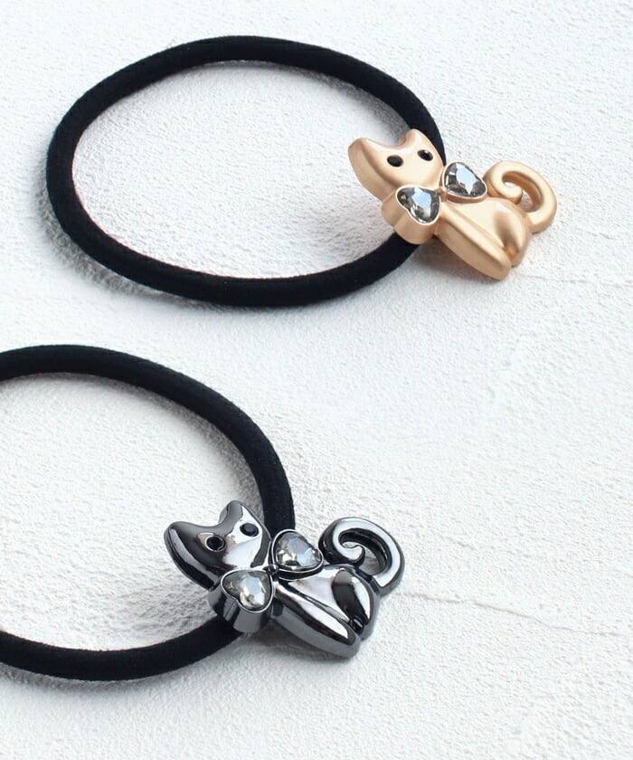 ・ミャウ ヘアゴムは、ちょこんと座った可愛い猫モチーフのヘアゴム。ねこの胸元にはキラキラ輝く大きなリボンがついていて、まるでおしゃれな猫ちゃんが髪に乗っかっているようです♪