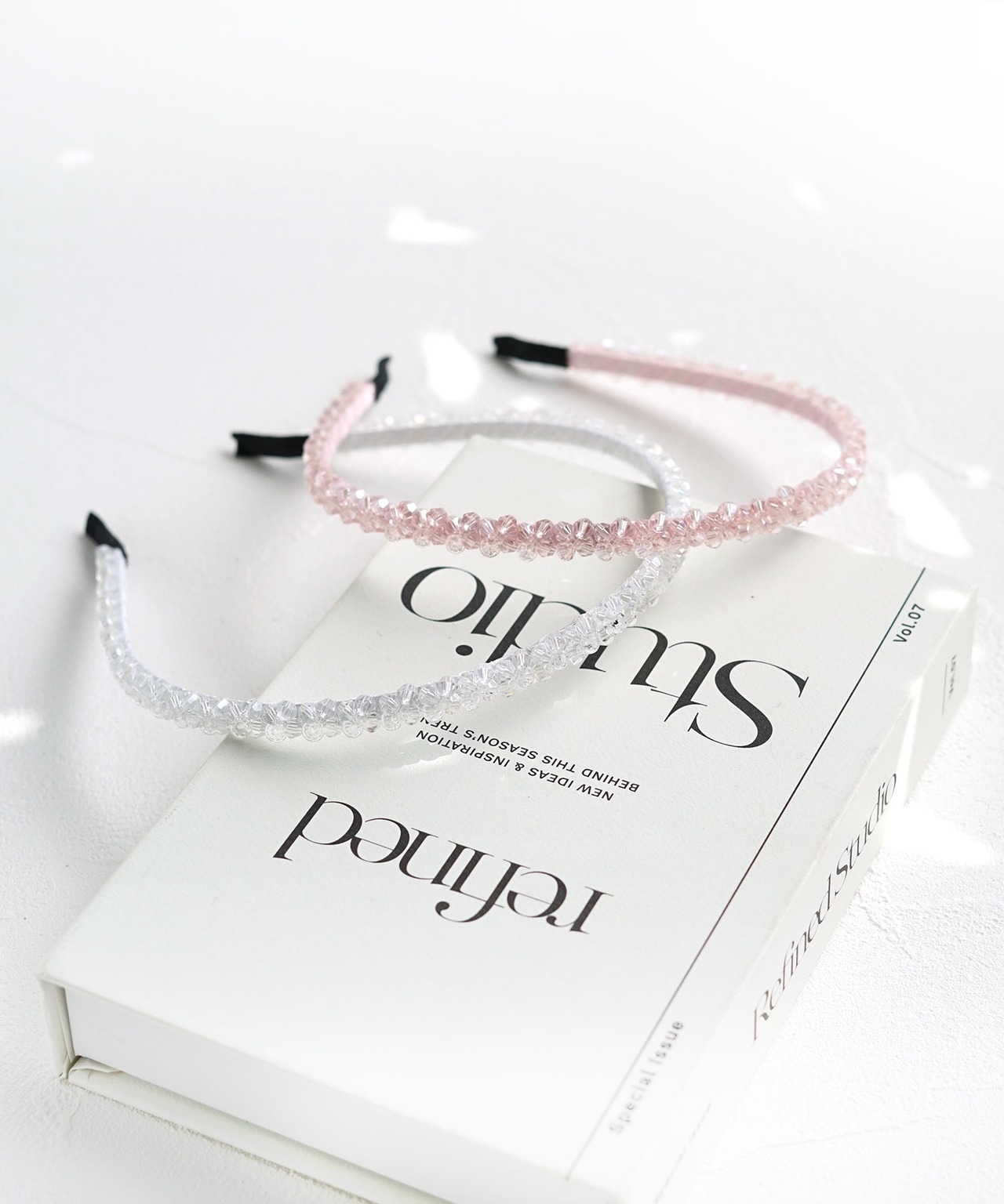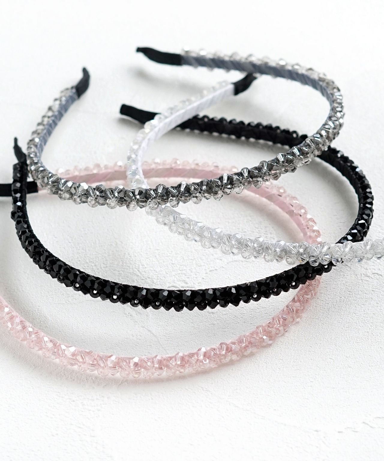 ・連なるきらきらカットビーズが光を浴びて上品に輝くジュリスカチューシャ。