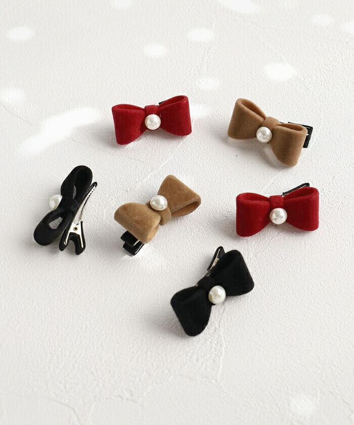 ※温かみのあるフロッキー加工のリボンが、寒い季節のおしゃれに優しく寄り添います。可愛らしいヘアクリップで、お子様の毎日をもっと笑顔でいっぱいにしませんか?