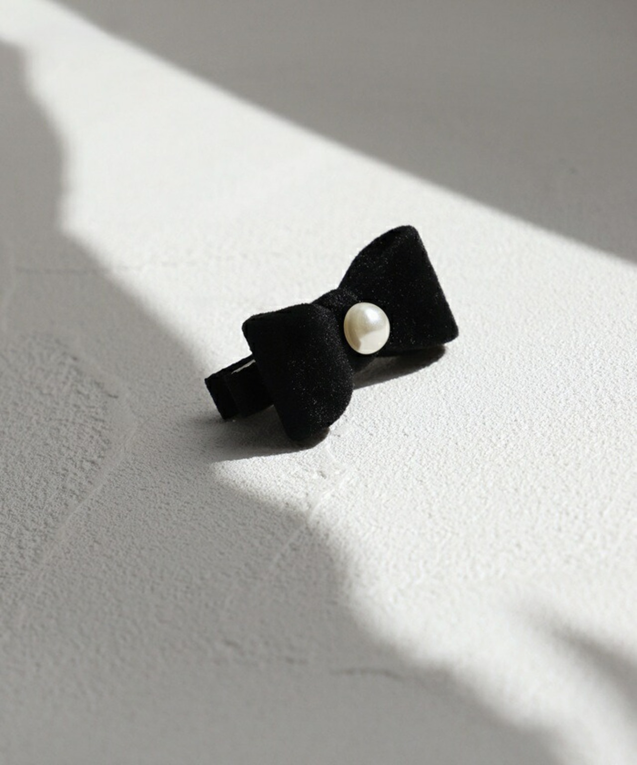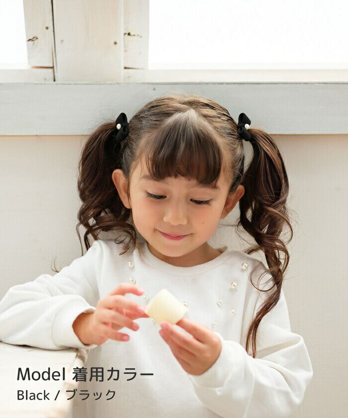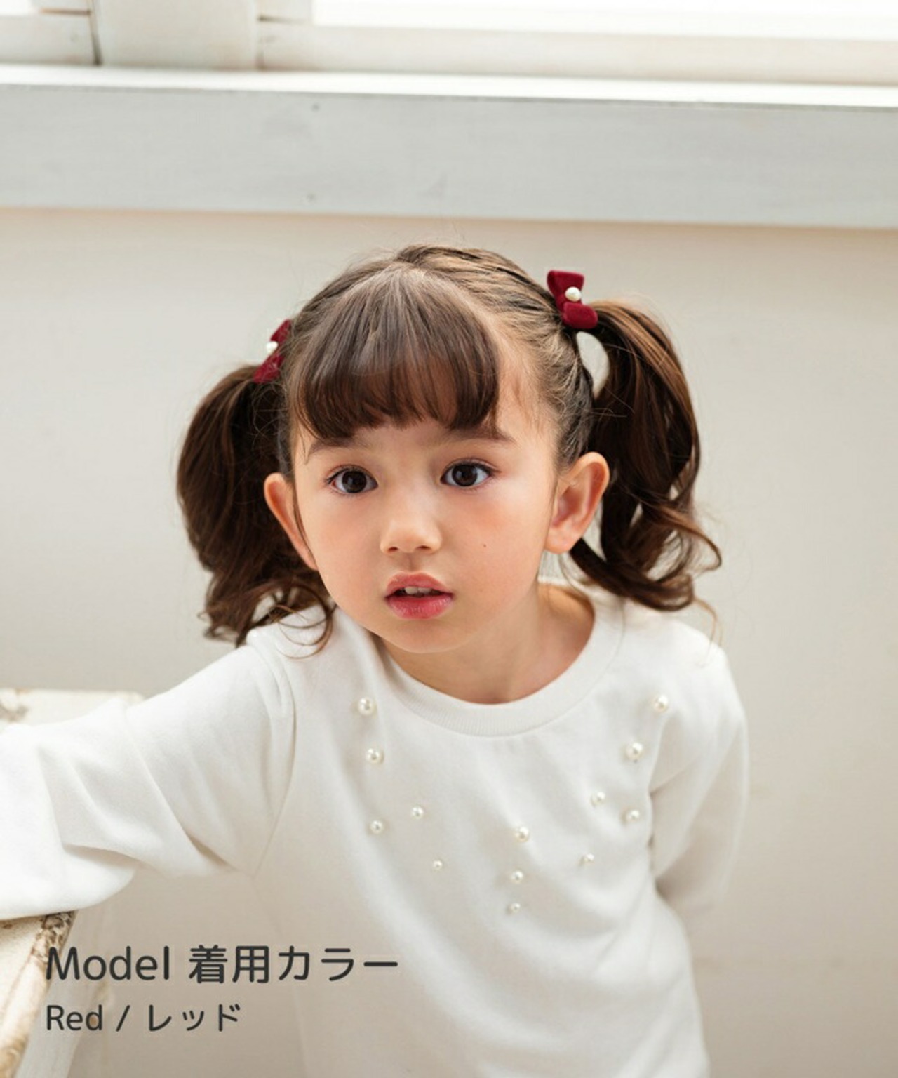 ・クラシカルなベルベット調のリボンには、きらりと輝くパールが上品なアクセントに。動くたびに、お子様の表情を一層可愛く引き立てる、心ときめくデザインです。