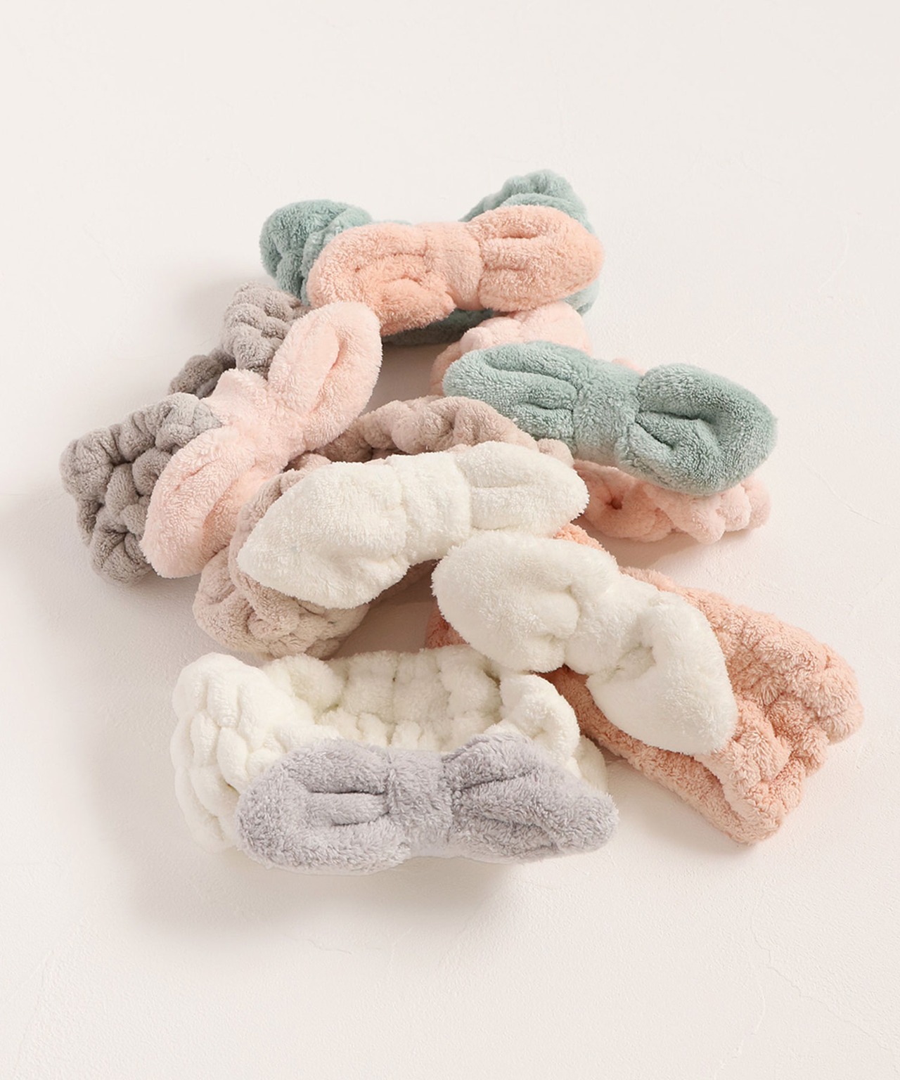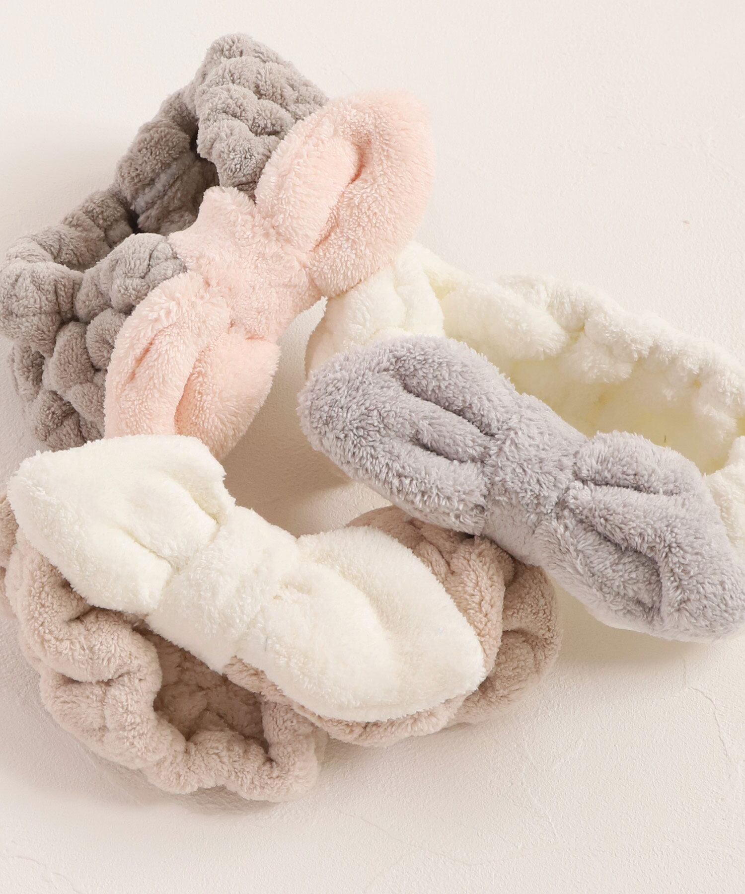 ・ふわふわのもこもこ素材が心地よく、柔らかく優しい肌触りが魅力のヘアバンド。