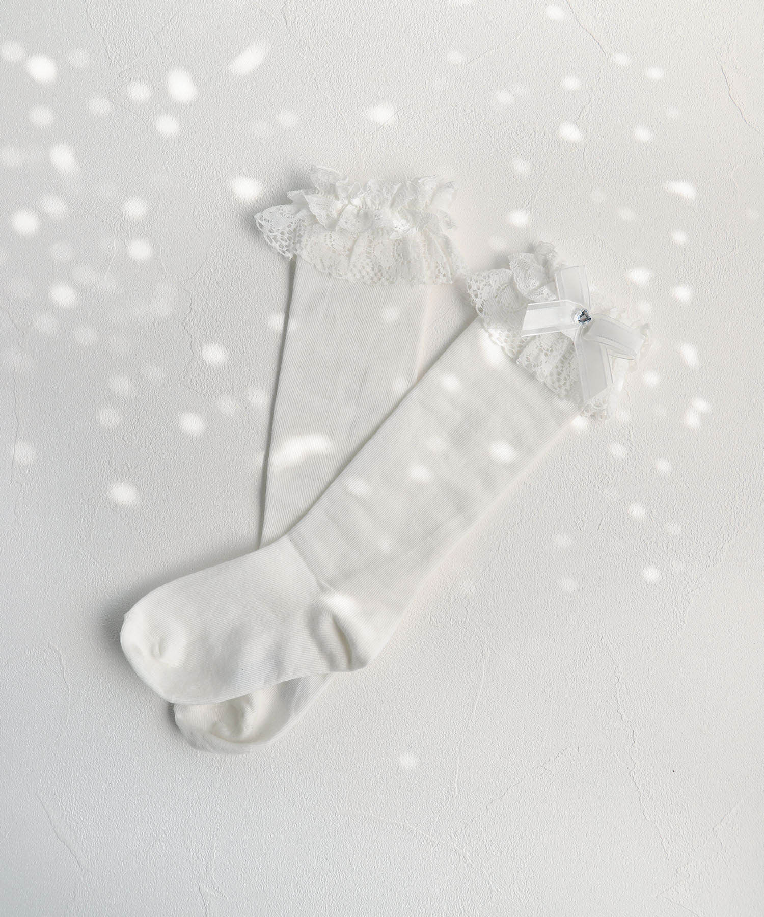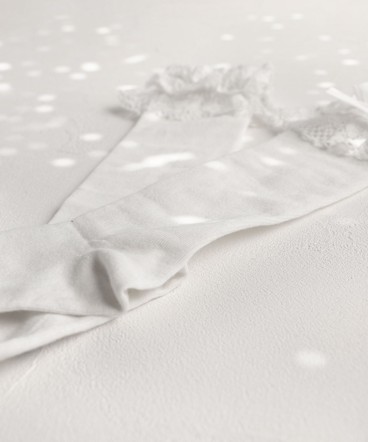 ・可憐な足元を演出する「ルミ レース ハイソックス」。