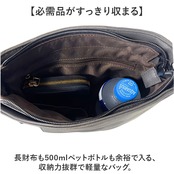 ・長財布も500mlペットボトルも余裕で入る、収納力抜群で軽量なバッグ。