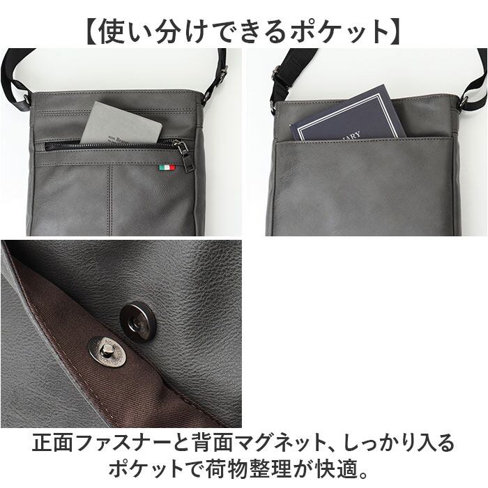 ・正面ファスナーと背面マグネット、しっかり入るポケットで荷物整理が快適。