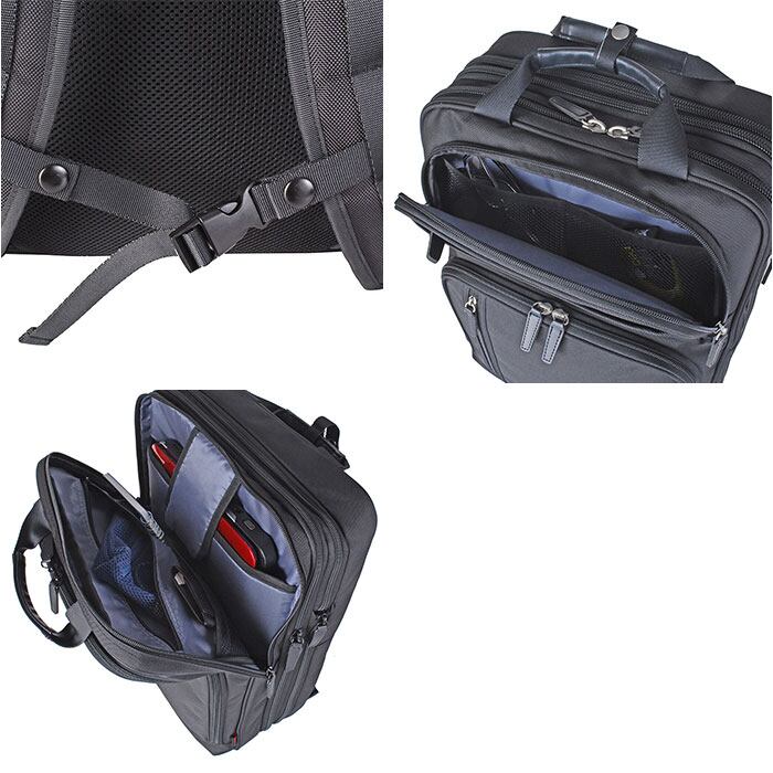 ・背面にはキャリーバッグに取り付けられるループ付き。移動が多い出張や旅行でもストレスフリー