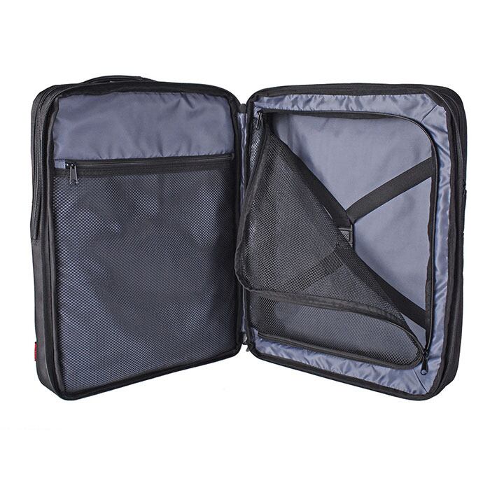 ・背面側メッシュポケットにシャツや着替えを収納!荷崩れ防止ベルトでしっかり固定。