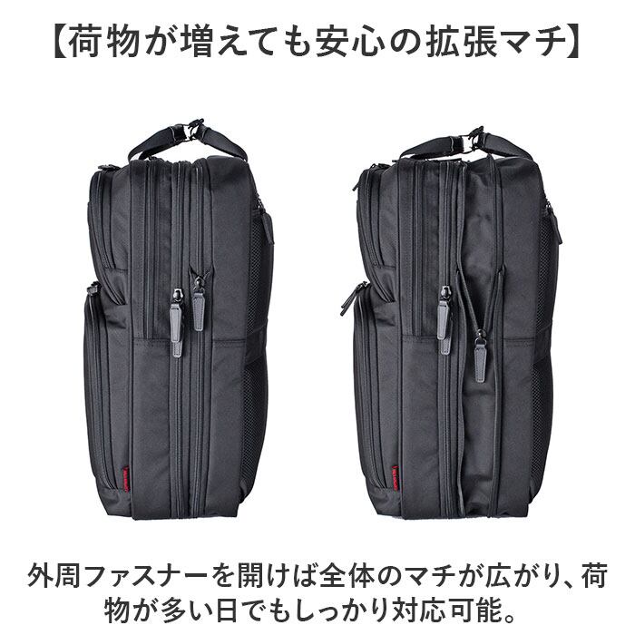 ・外周ファスナーを開けば全体のマチが広がり、荷物が多い日でもしっかり対応可能。