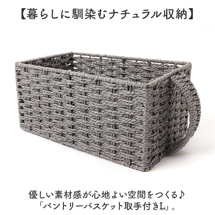 ・優しい素材感が心地よい空間をつくる♪「パントリーバスケット取手付きL」。